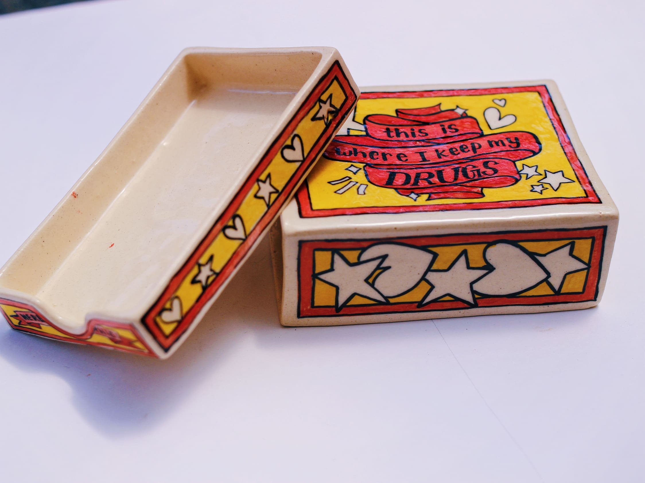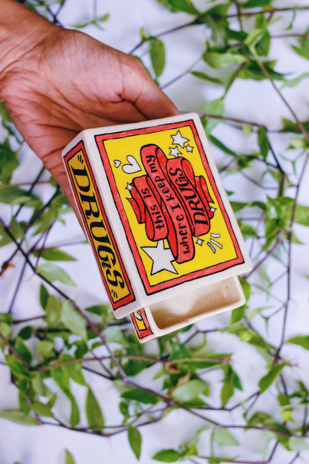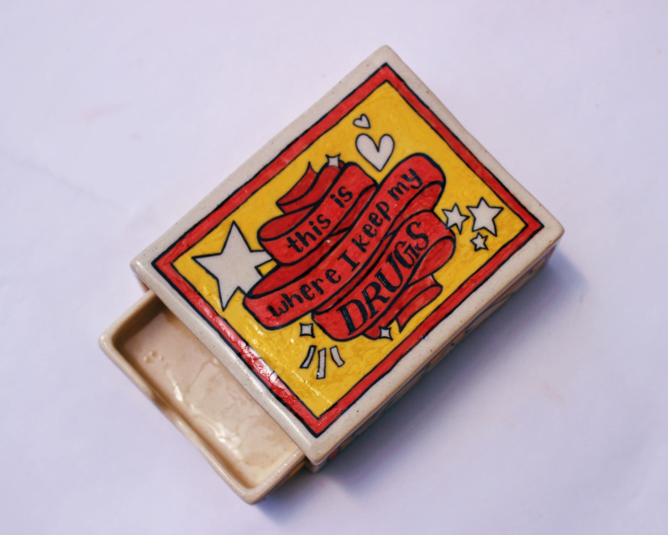 Crafted with a smooth pull-out drawer, it's perfect for stashing your secrets or completely legal ashes with a not-so-subtle sense of humor.