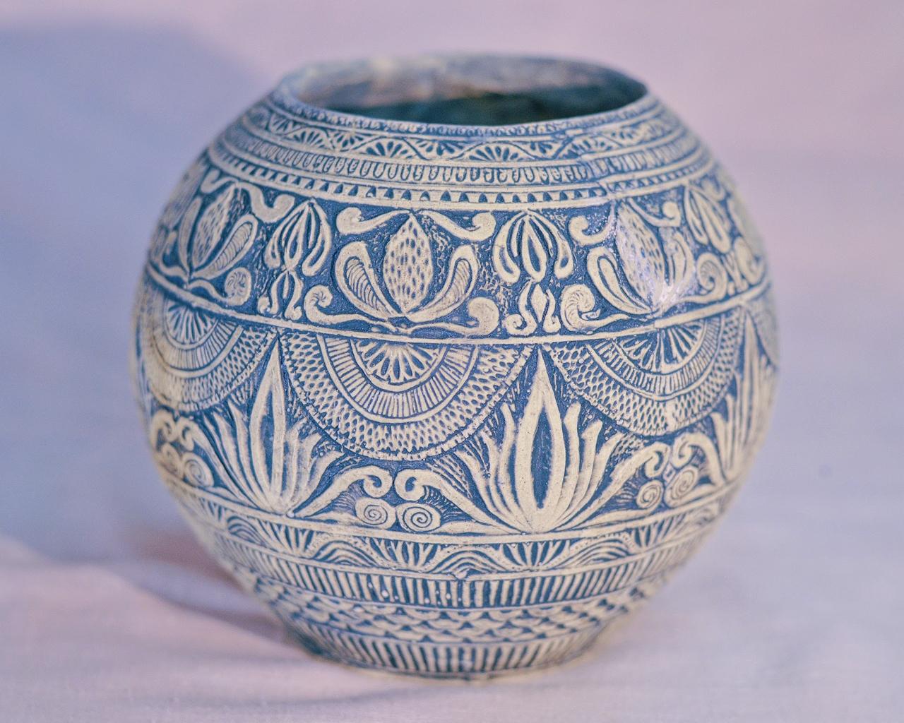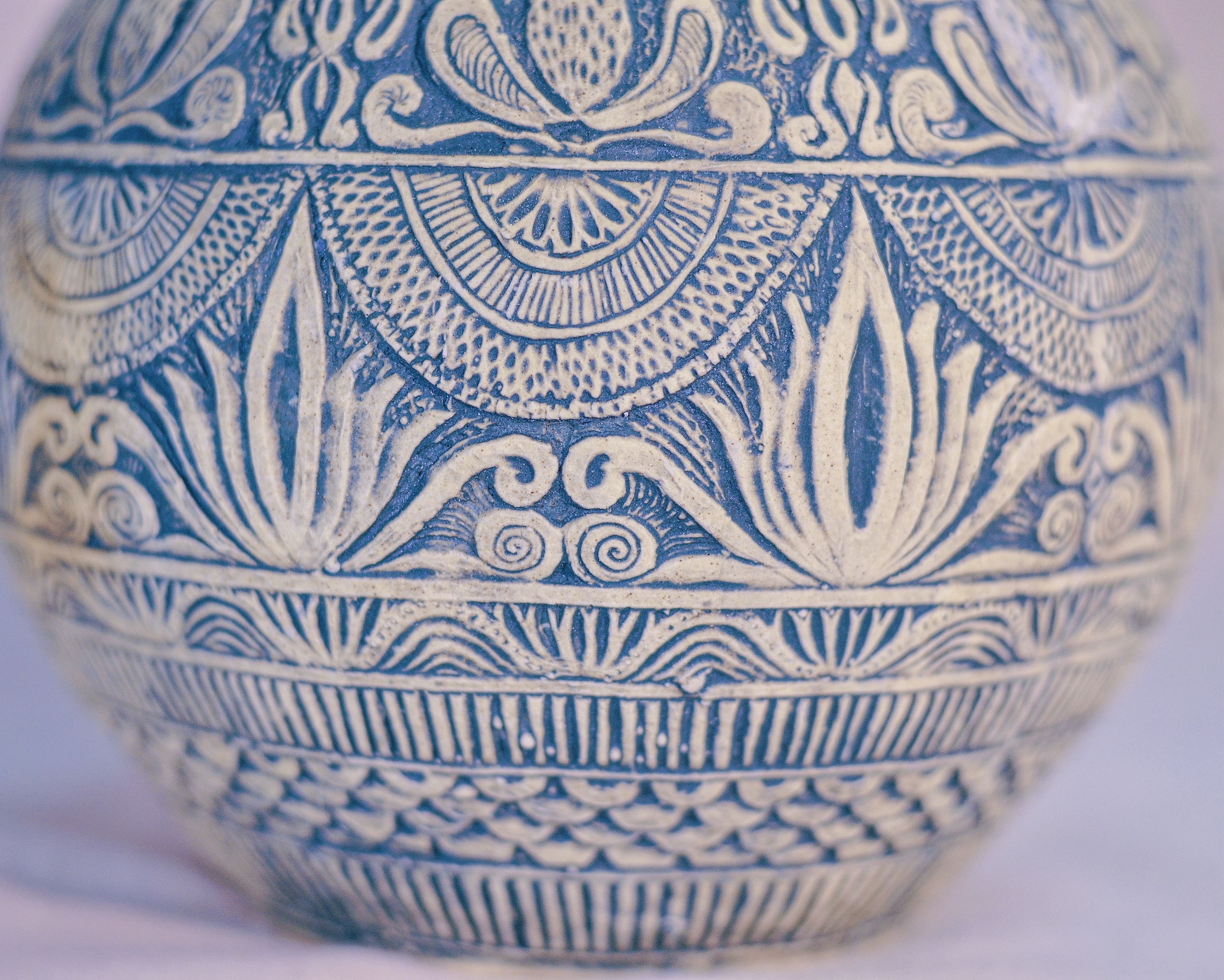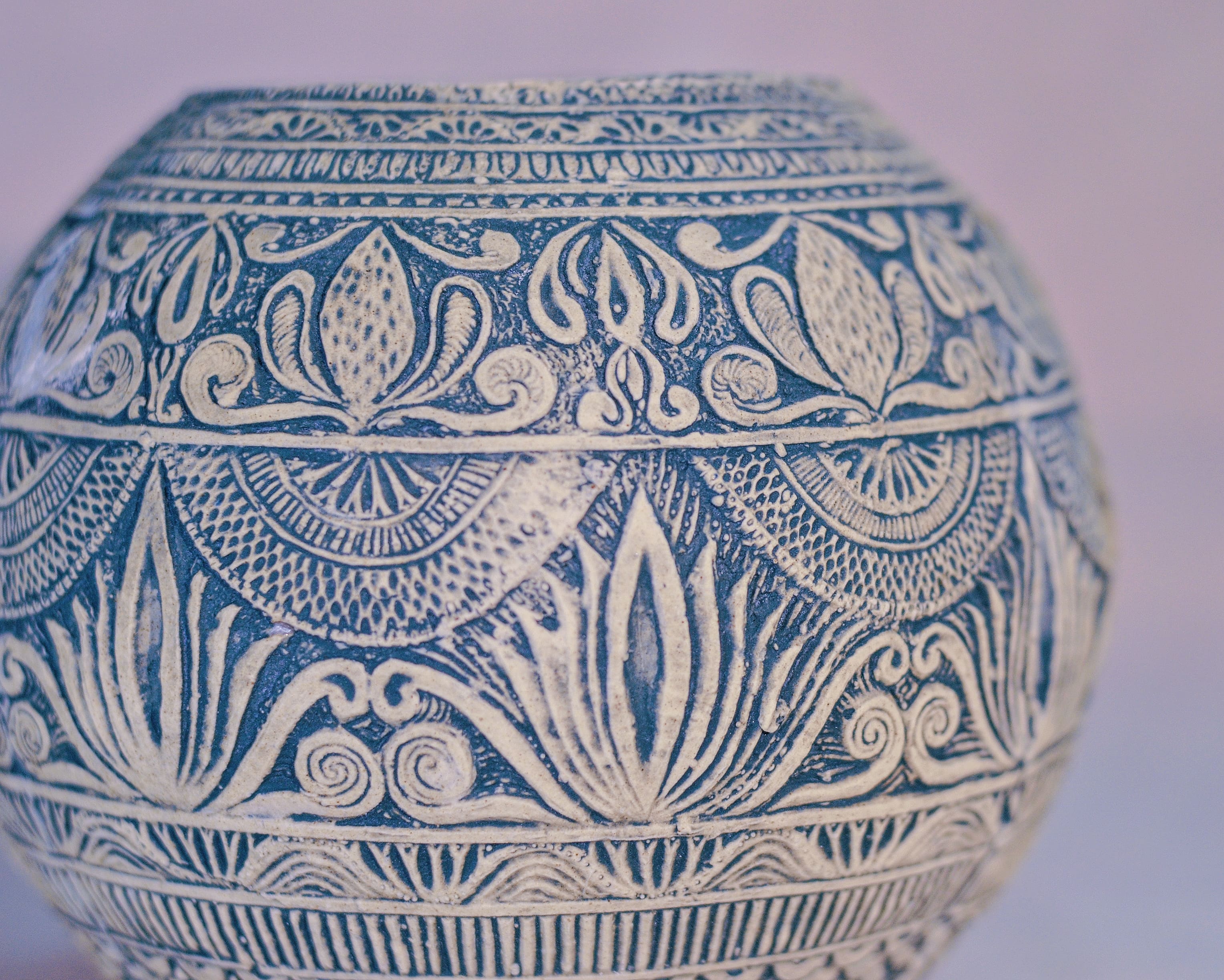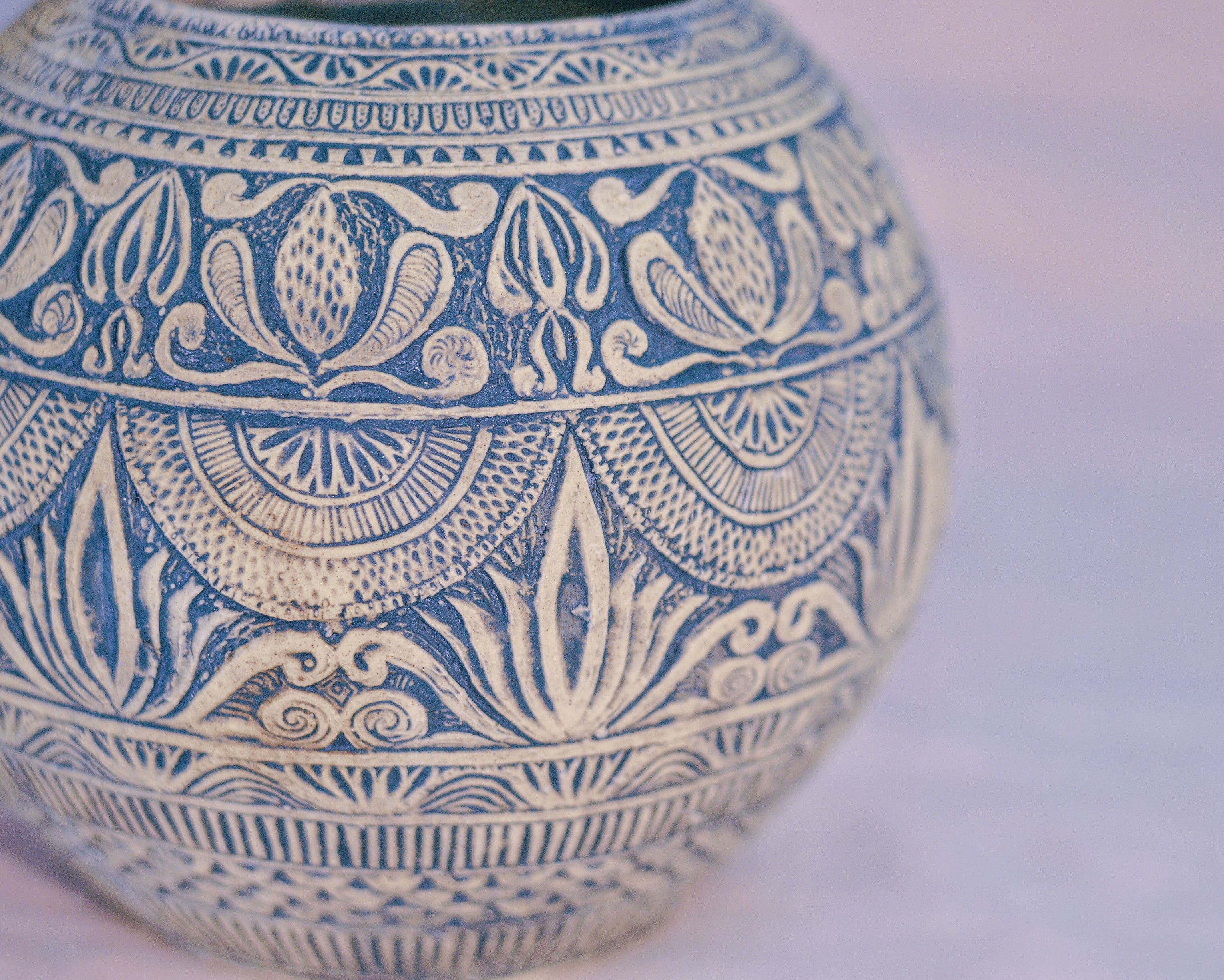 This vessel draws from the sculptural language of ancient temple architecture, where every surface tells a story, and every motif is a prayer in pattern. Layered in these delicate carvings that echo the pulse of old cities and whispered stories, it invites you to pause, to notice, to remember.