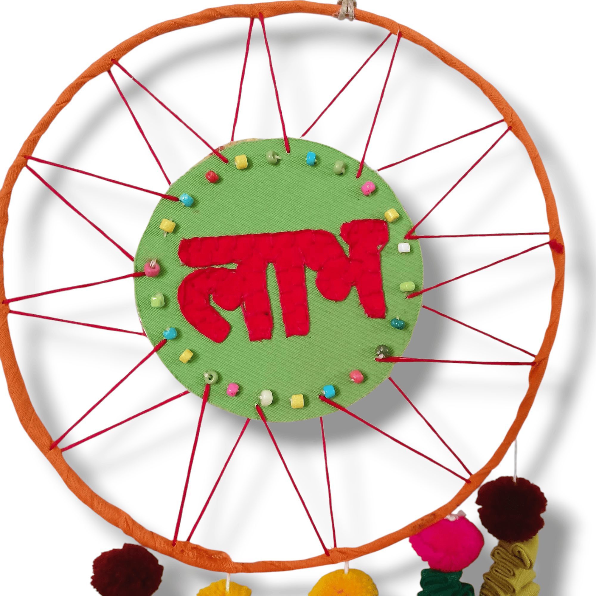 Introducing our Upcycled Shubh-Labh Dreamcatchers, the perfect choice for eco-conscious celebrations. Handcrafted with captivating motifs appliqué with blanket stitch embroidery, these sustainable and reusable decorations add a whimsical touch to your festivities. This Dreamcatcher not only add a festive touch to your Festive decorations but also offers a sustainable and reusable alternative to balloons, all while being completely plastic-free.