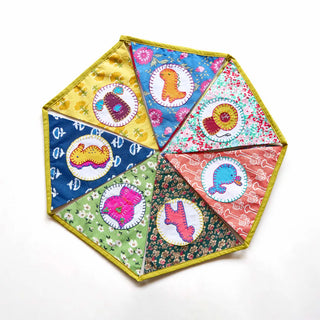 Elevate your celebrations and embrace ecofriendly living with our Handmade Buntings. Crafted with captivating cupcake motif appliqué and blanket stitch embroidery, these sustainable and reusable decorations add a whimsical touch to your festivities.