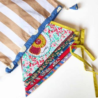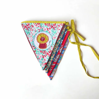 This eco-friendly alternative to plastic balloons and paper banners adds a vibrant touch to home decor or special occasions. Crafted from upcycled cloth material, our bunting reduces waste and promotes circular economy without compromising on style and durability.