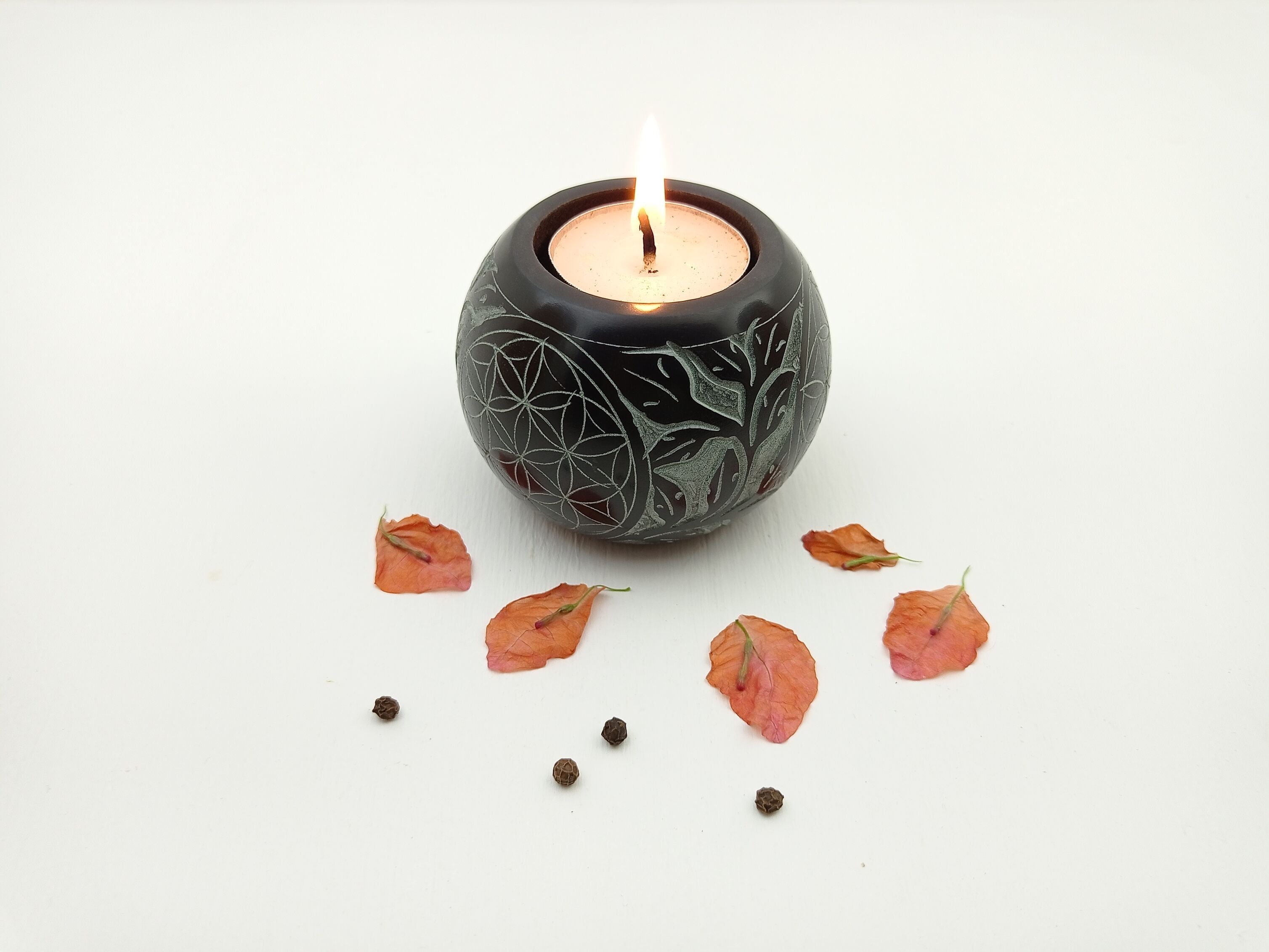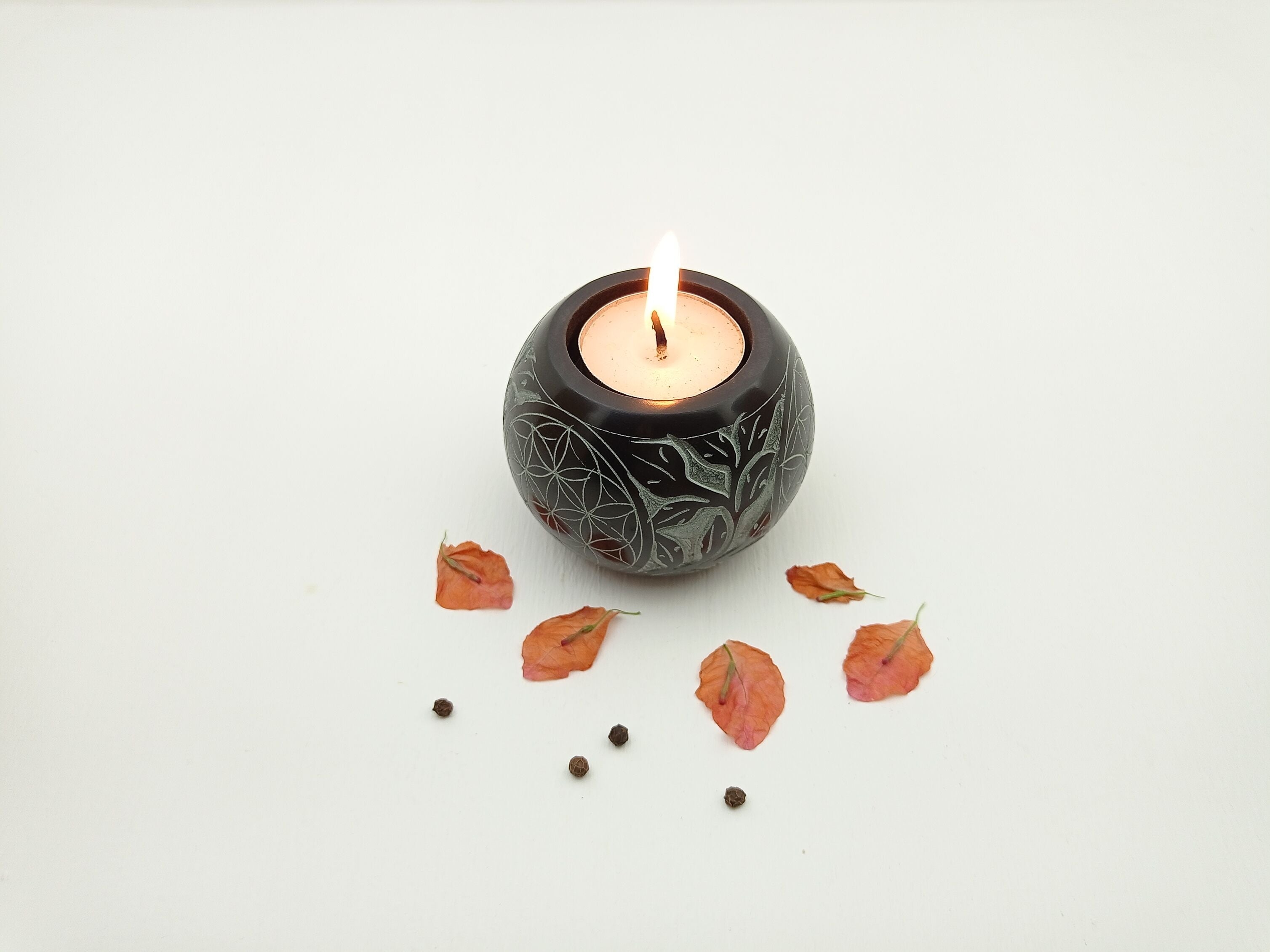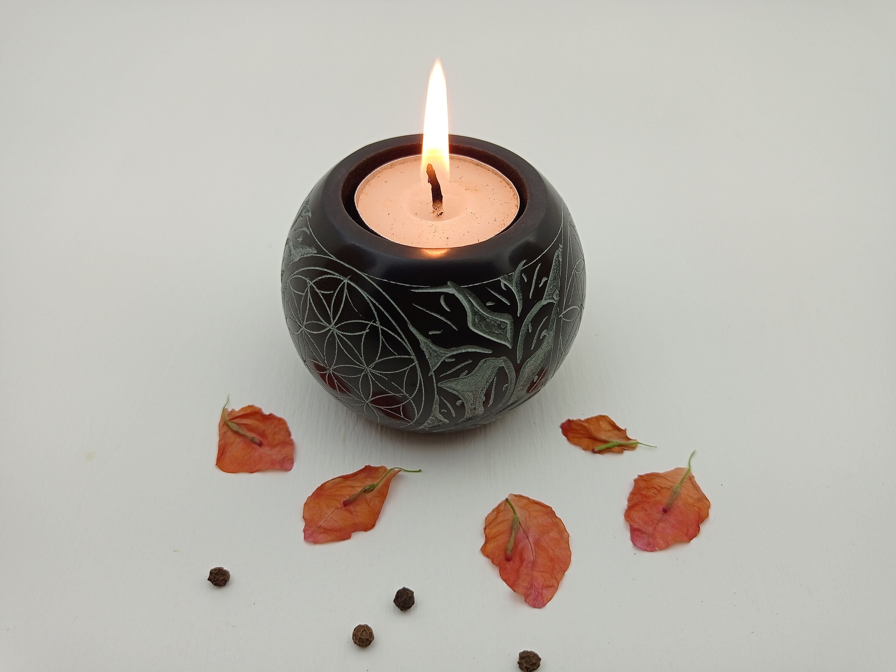 Add a touch of class and elegance to your home with our soapstone candle holders. Carving craft on the palewa soapstone with ball shape, these candle holders uplift the mood and ambiance of any room. One can easily fit T-light candles or regular candles in these. These candle holders are perfect for your room or anywhere you wish to put them in your house to enhance the ambiance and feel of that area. They also make a great gift for loved ones or corporate clients.