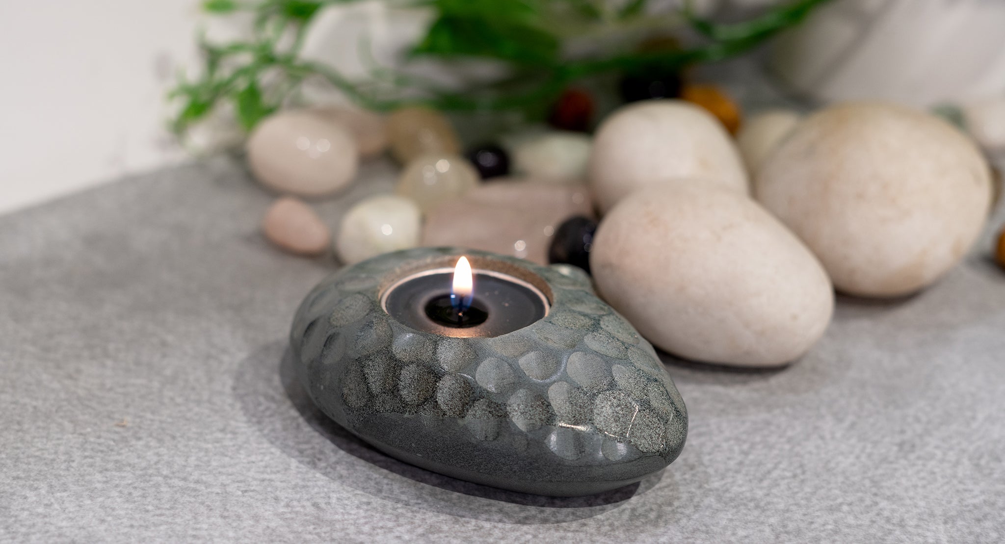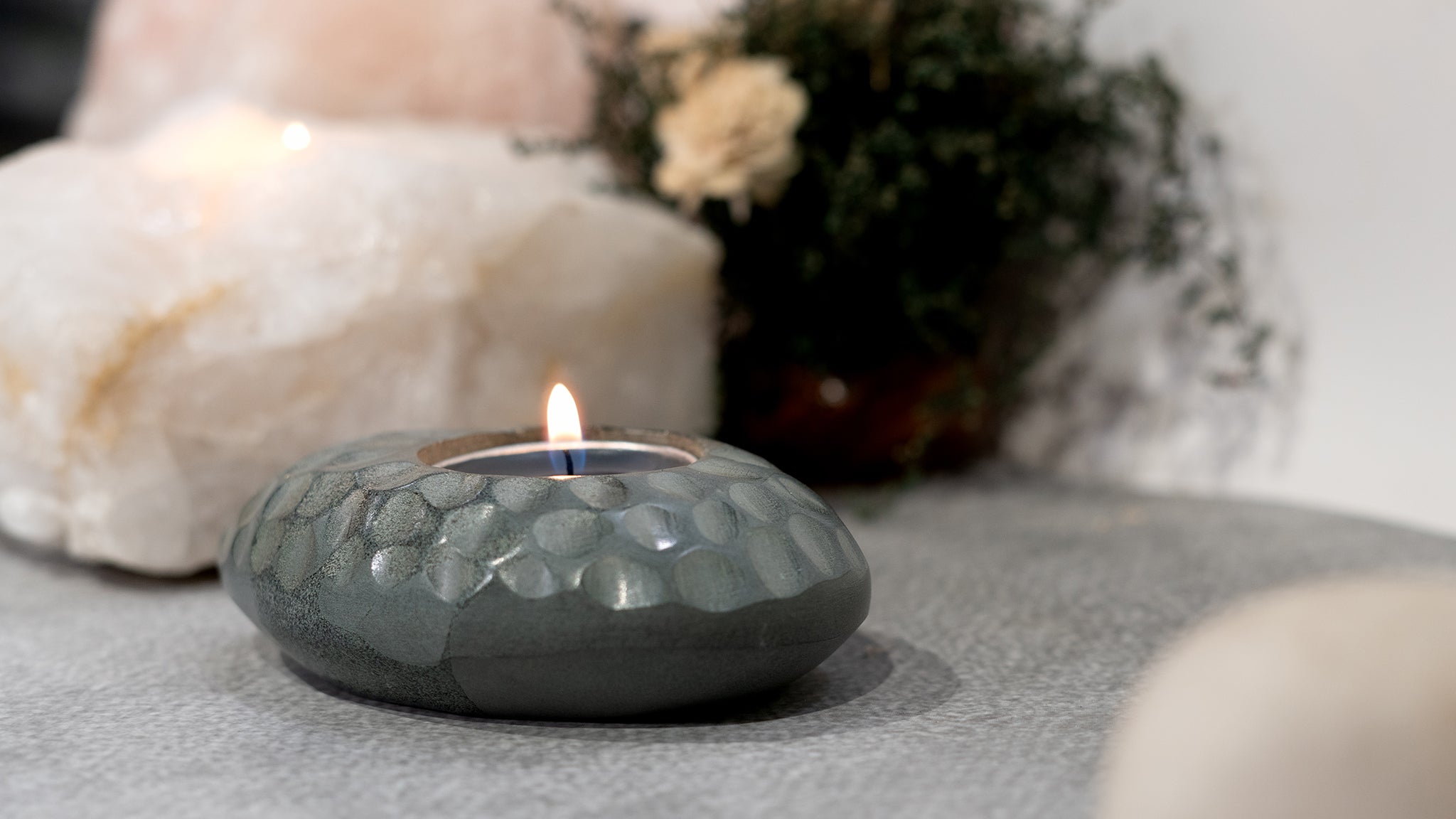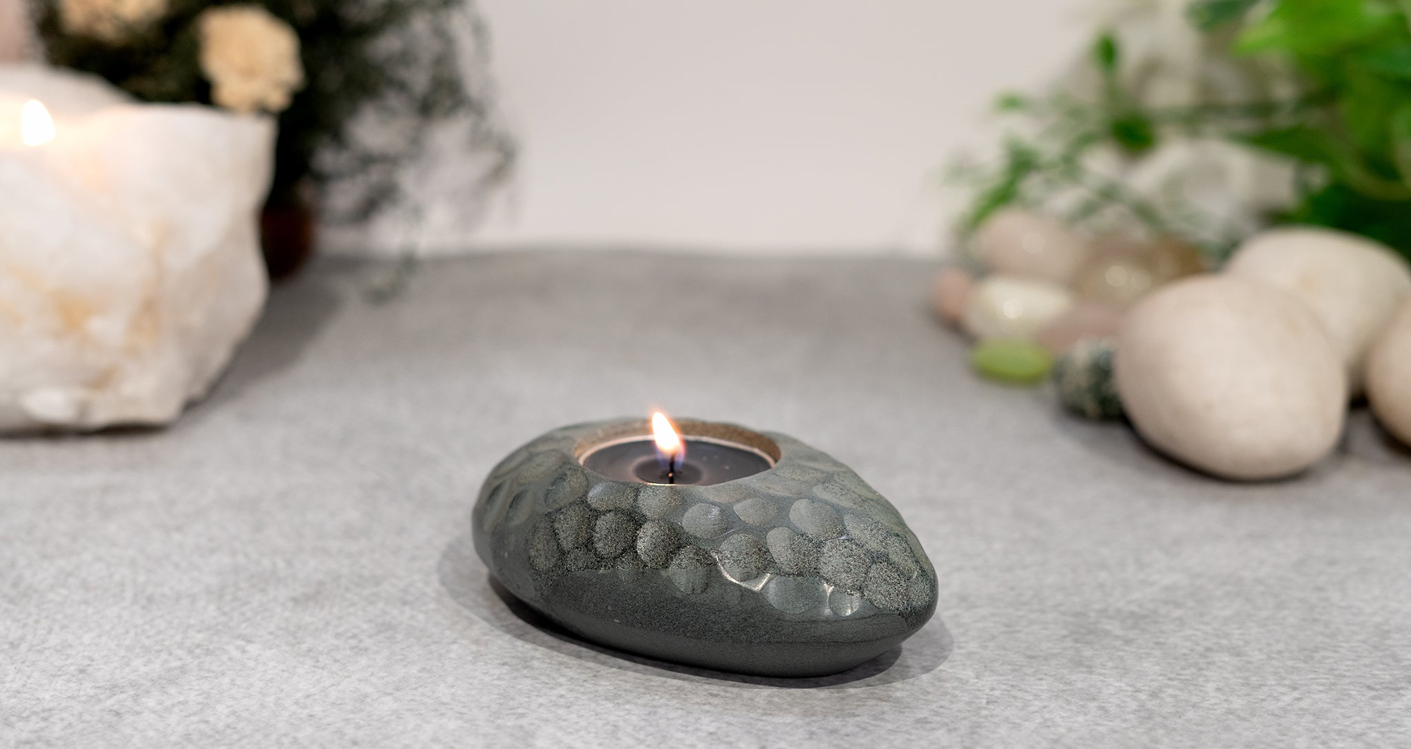 Illuminate your space with the rustic elegance of the Hammered Oval Luminary TeaLight, a handcrafted creation in natural Palewa stone. The textured, hammered design adds depth and character, making it a unique addition to any décor.