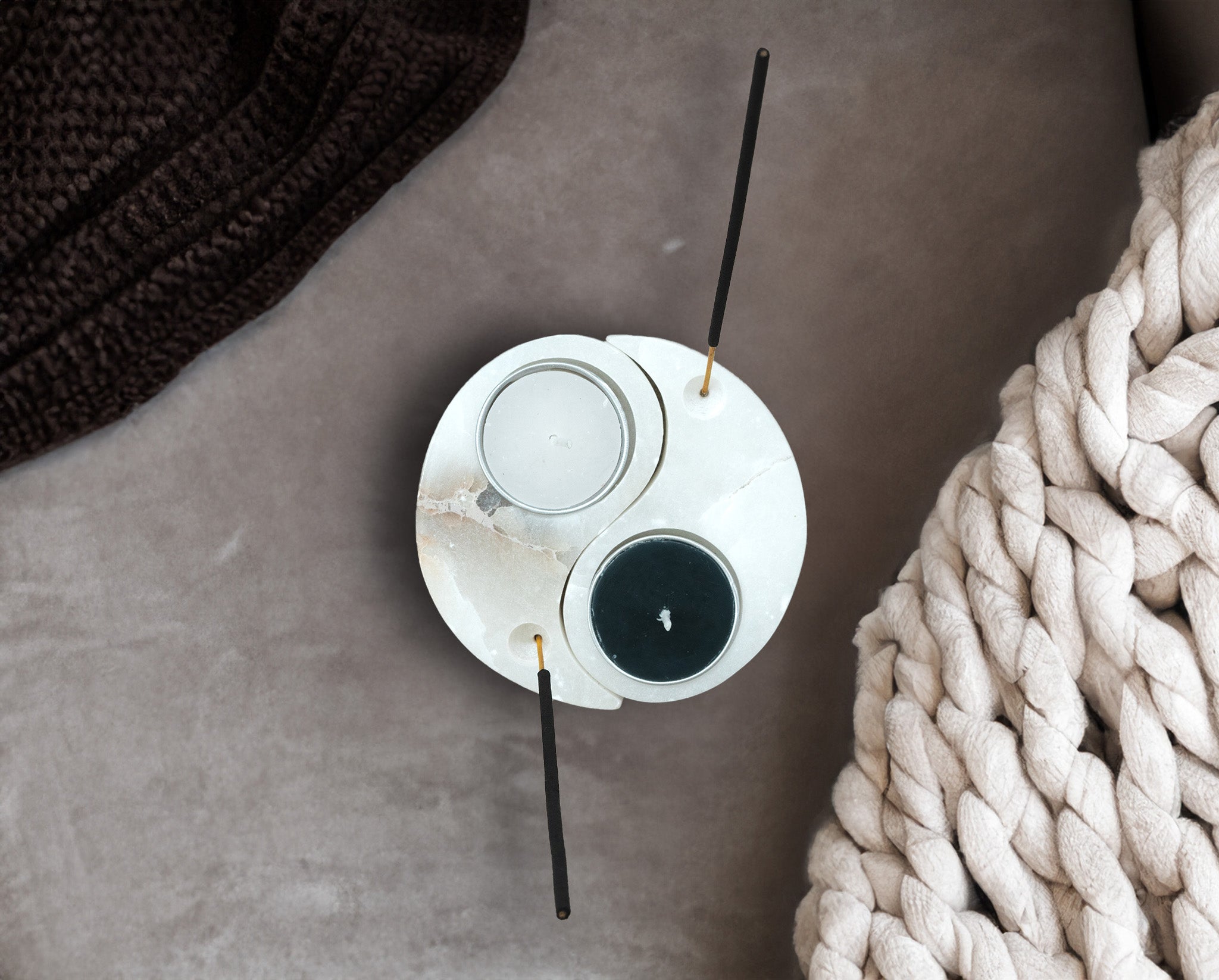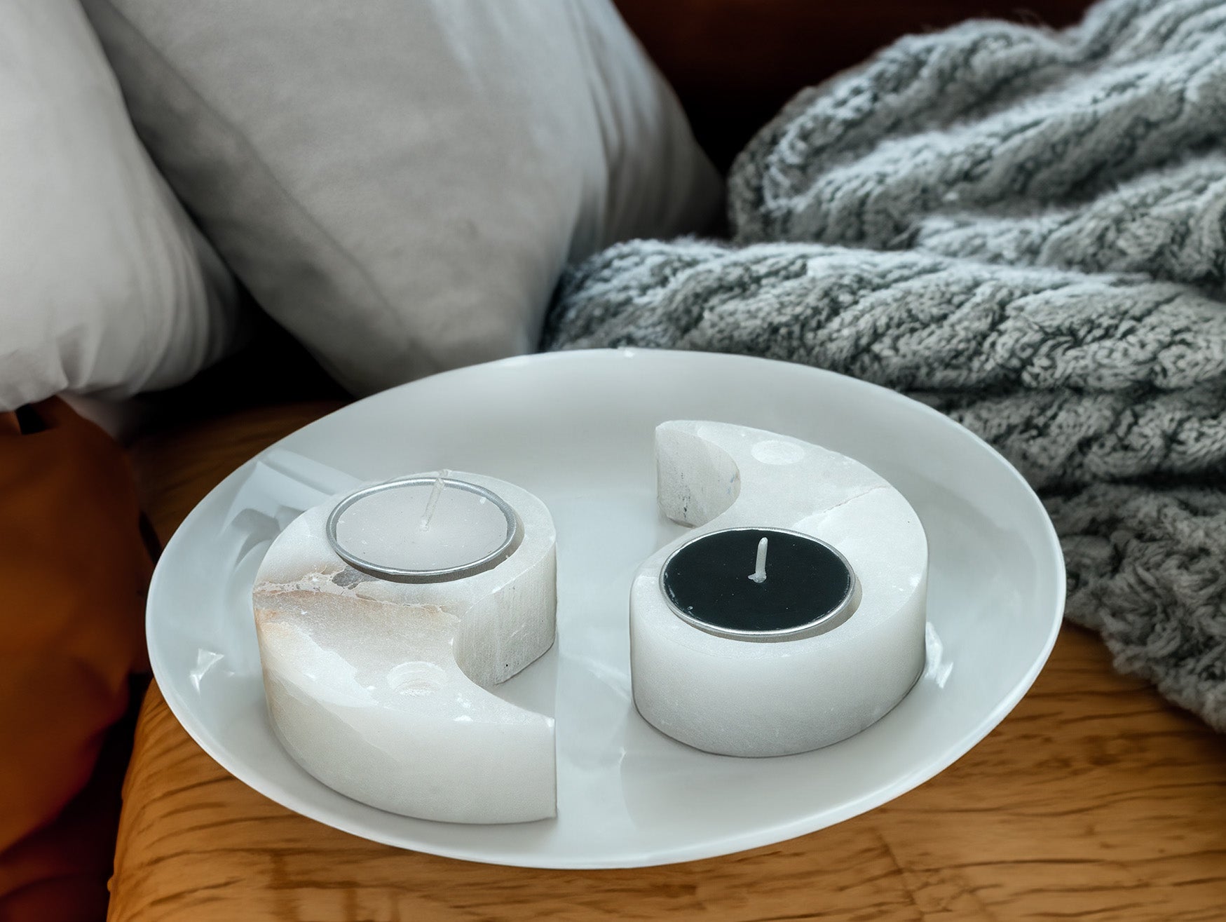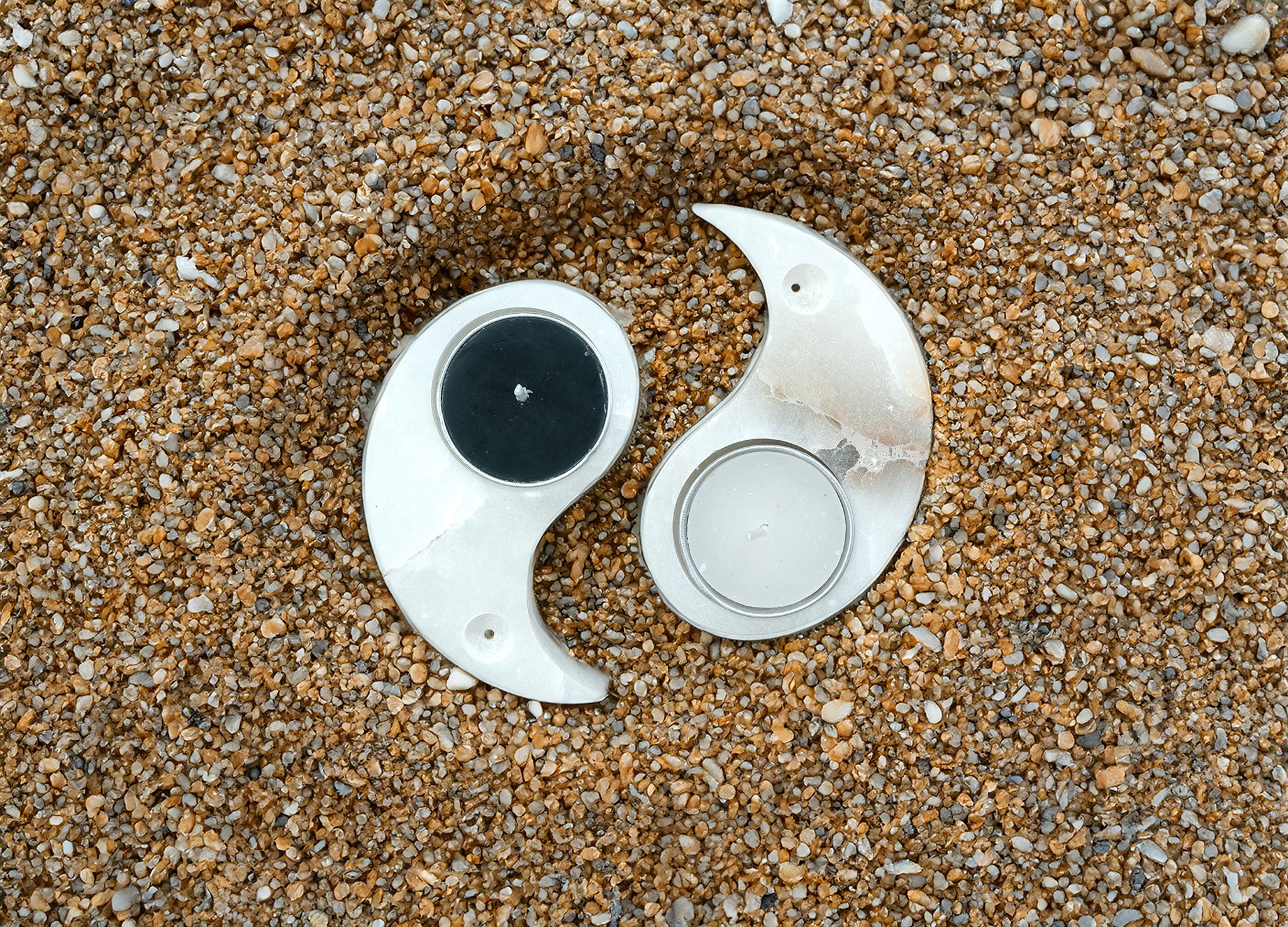 Design: The Yin-Yang shape offers a modern interpretation of timeless harmony, while the dual tea light holders create a warm, inviting glow.