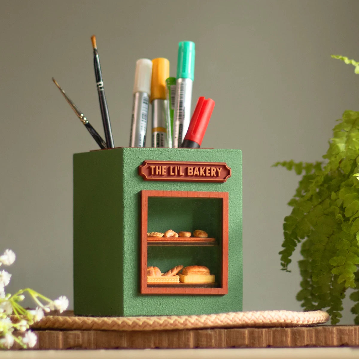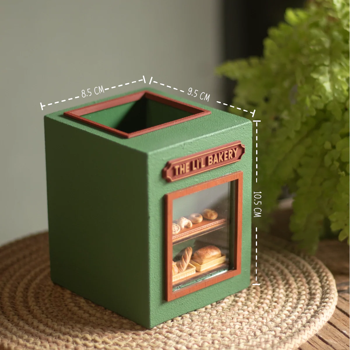 The Lil Bakery - a handcrafted miniature bakery desk organiser designed to add sweetness and charm to any workspace. This unique desk accessory doubles as a penholder and features intricate bakery-inspired details that instantly catch the eye.