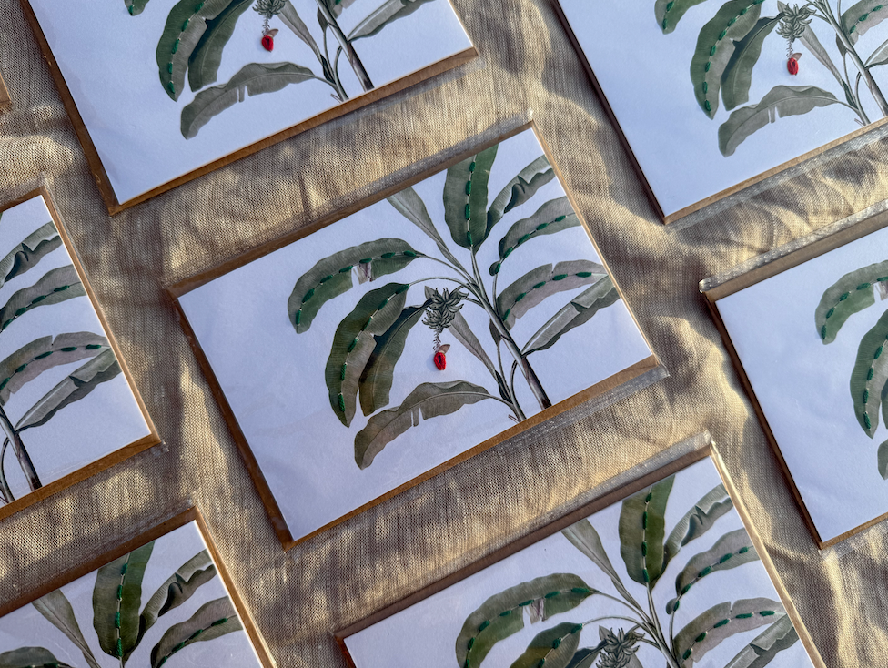 A beautifully illustrated banana tree stands tall with a tiny blossom in bloom—an ancient symbol of prosperity, fertility, and new beginnings. Cherished across India, these trees grace courtyards and ceremonies alike, blessing weddings with the promise of growth and harmony. Send your heartfelt wishes with our Banana Bloom postcard for a cherished couple, complete with an envelope and a delicate dried flower tucked into every piece.