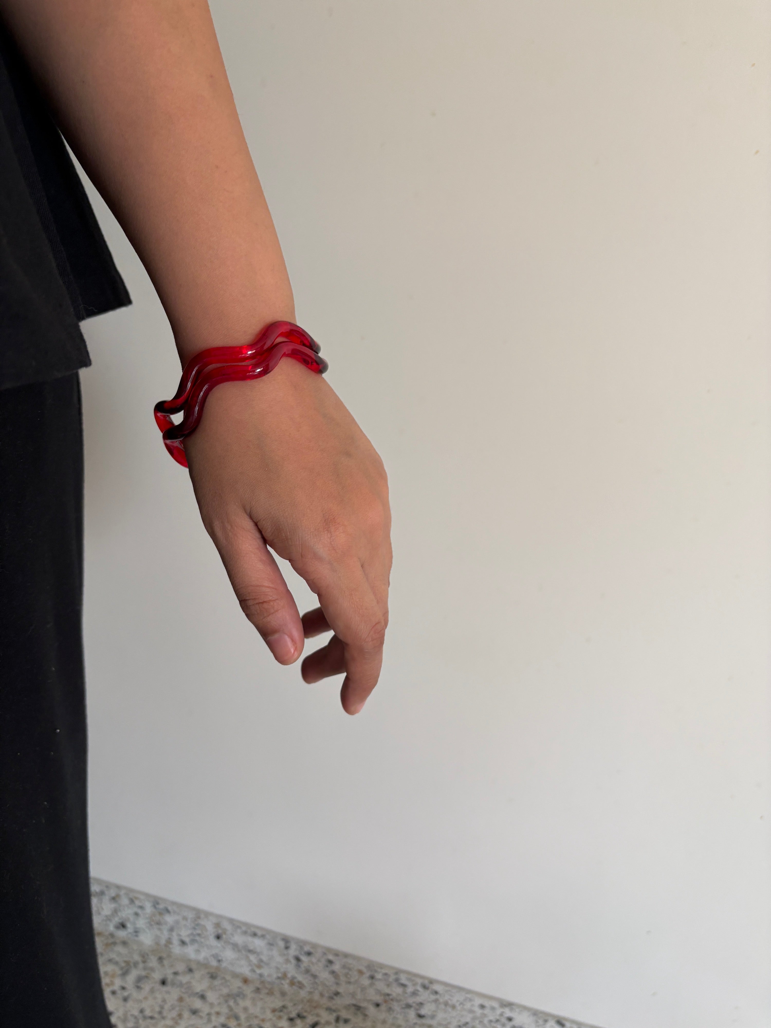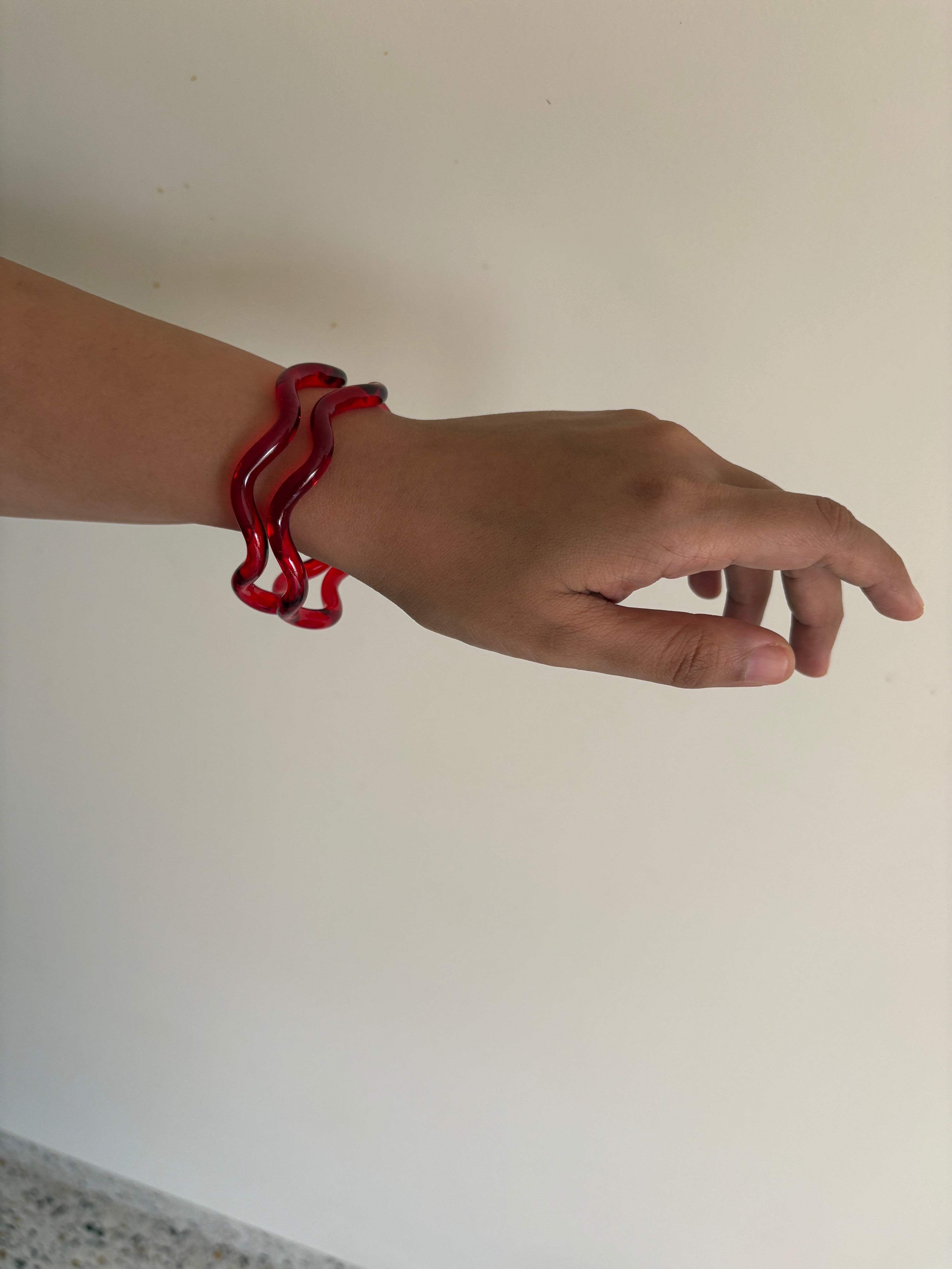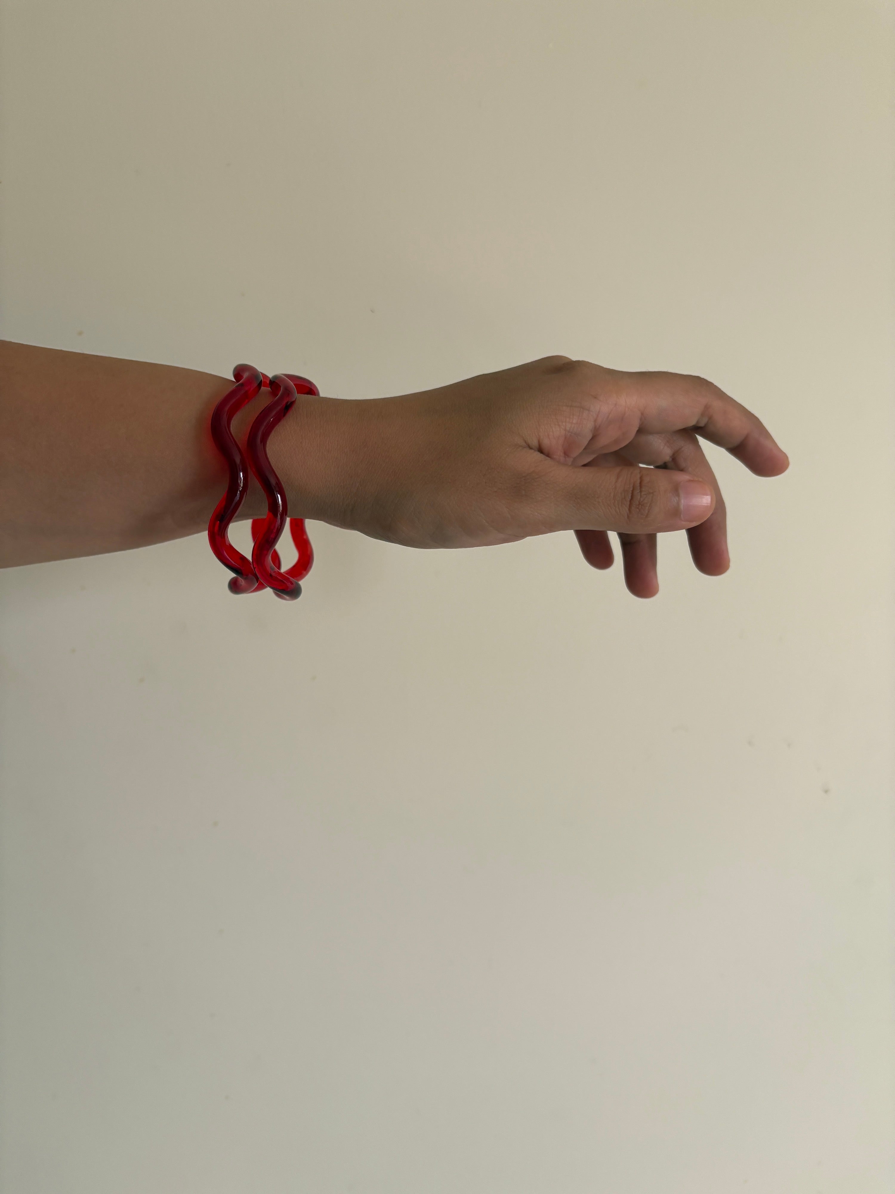 The Leher Bangles are all about movement with their smooth, wavy silhouette. Handcrafted with a glossy, glass-like finish that catches the light with every turn, they add instant charm to any look. Effortless and versatile to be paired in a stack or worn by themselves.
