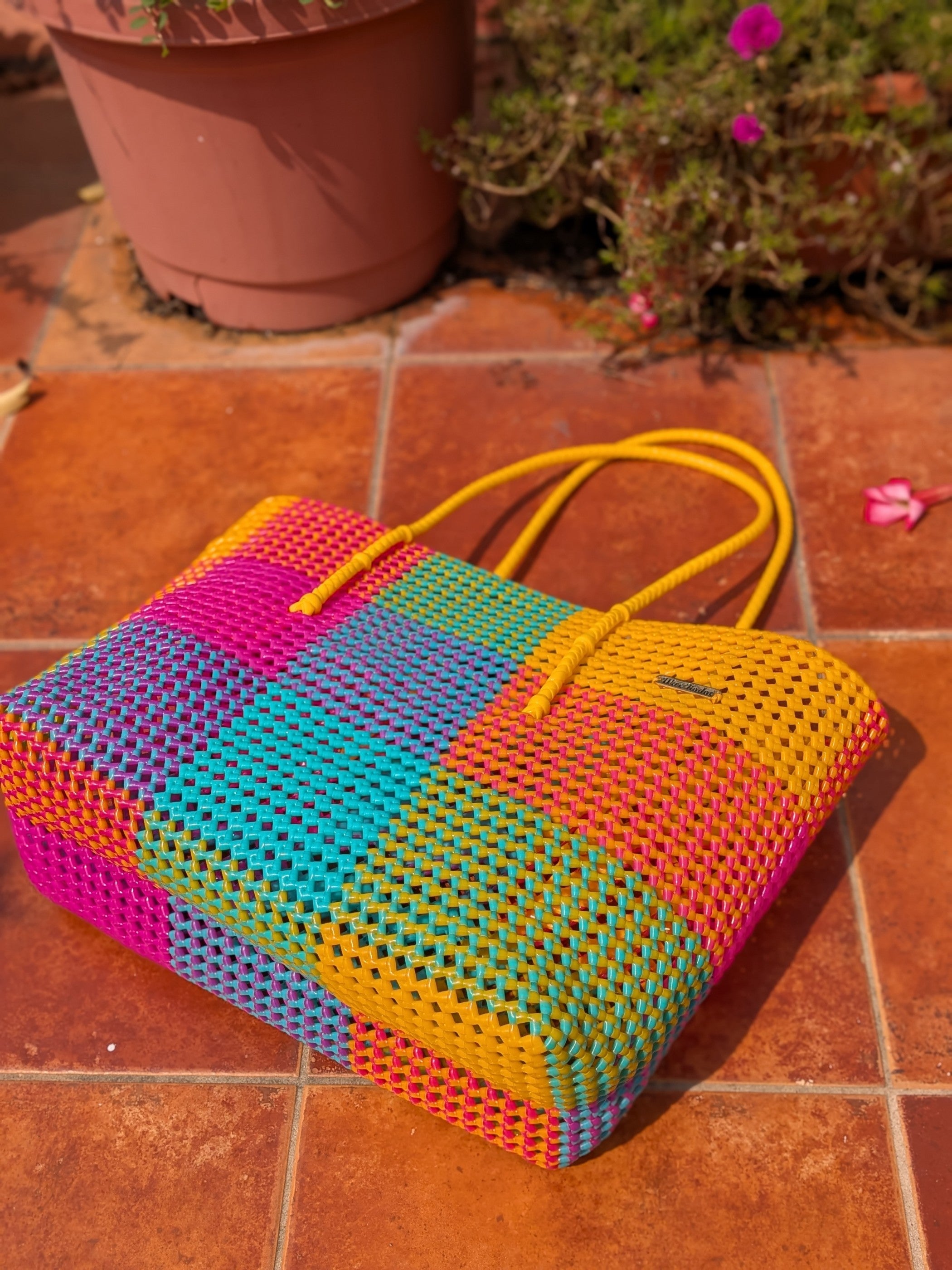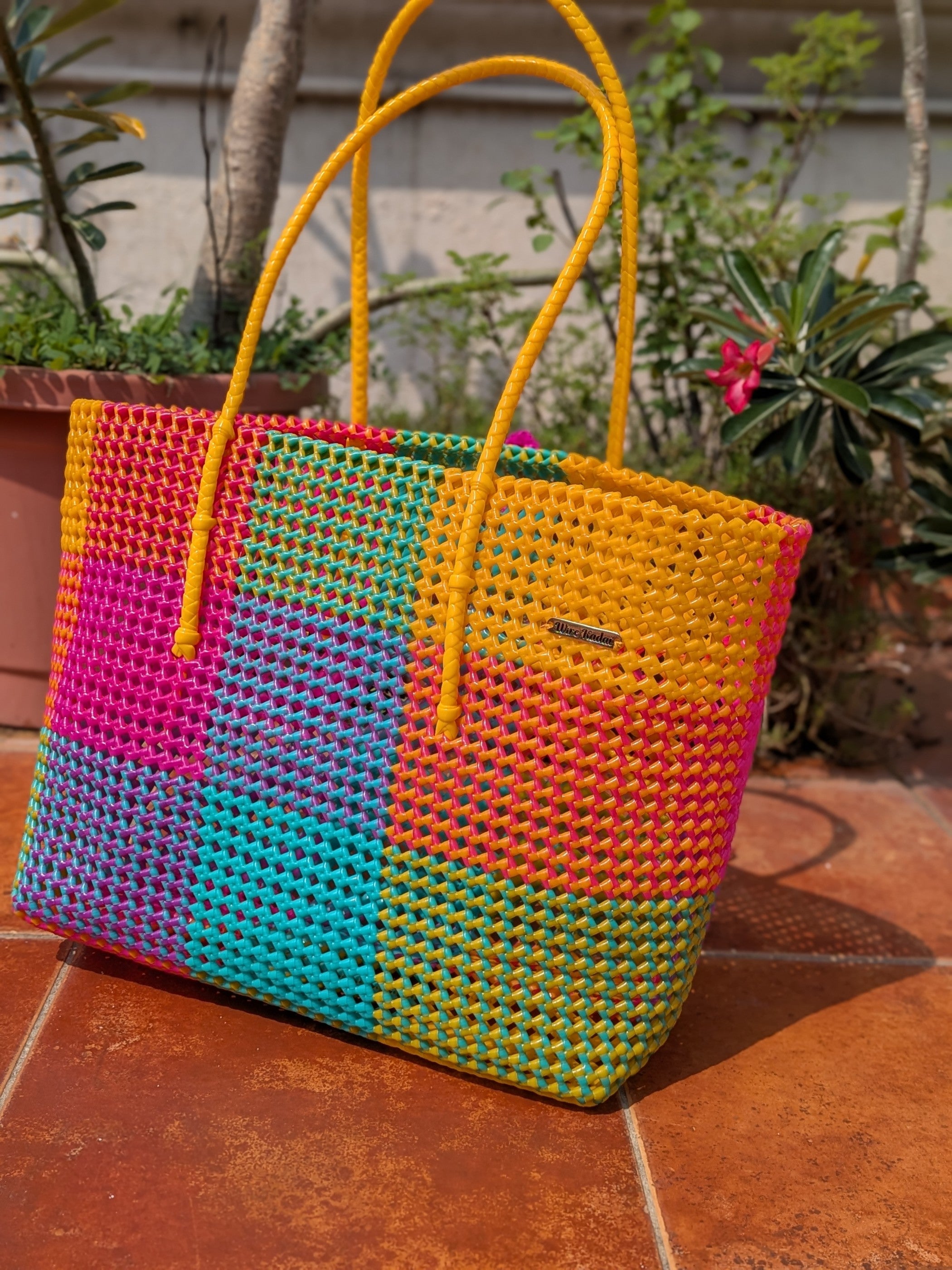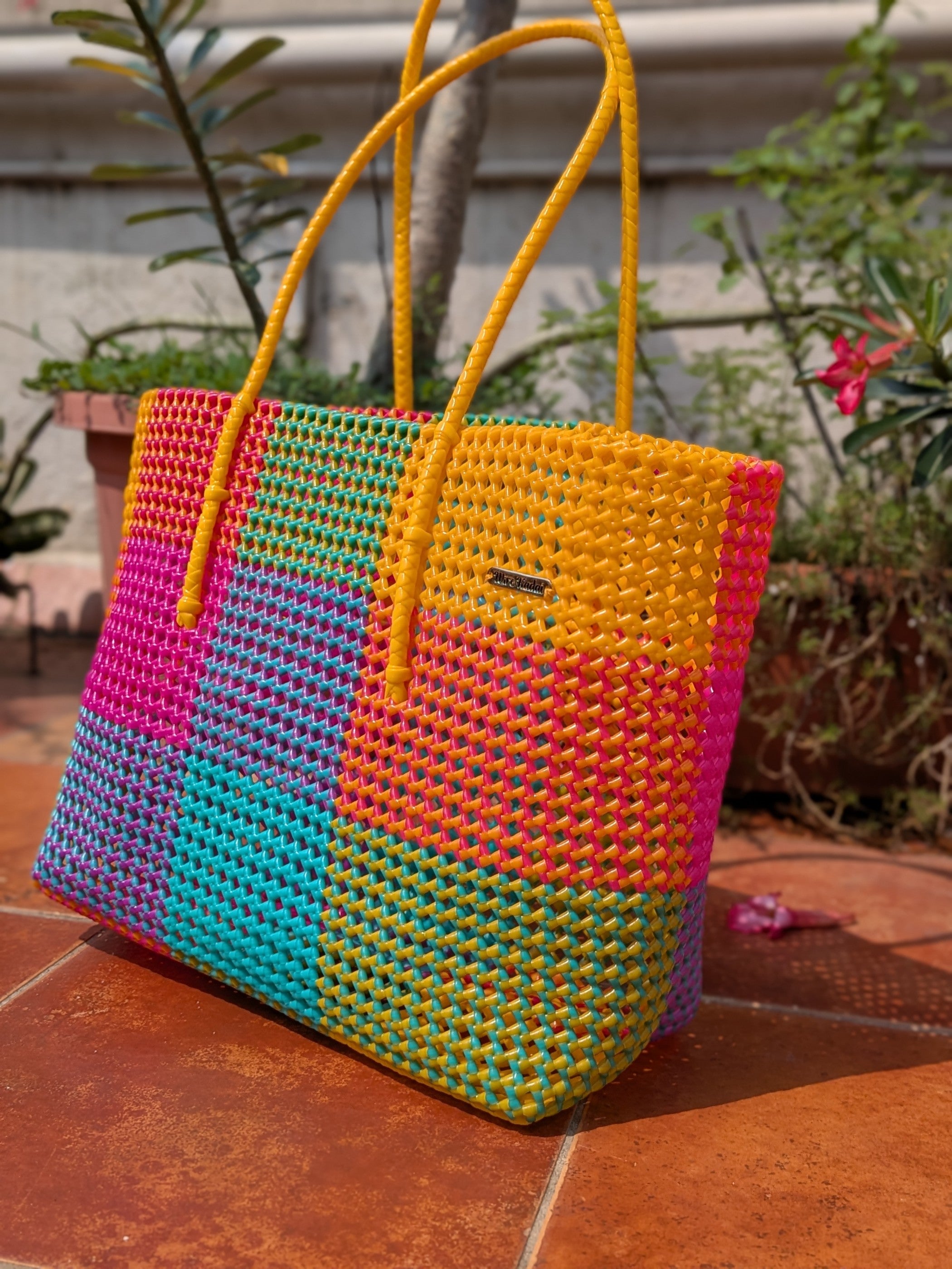 A very colourful koodai that can be carried and styled with anything. This koodai is our ode to the Madras checks and we added all the bright colours together to create something that looked like sunshine.
