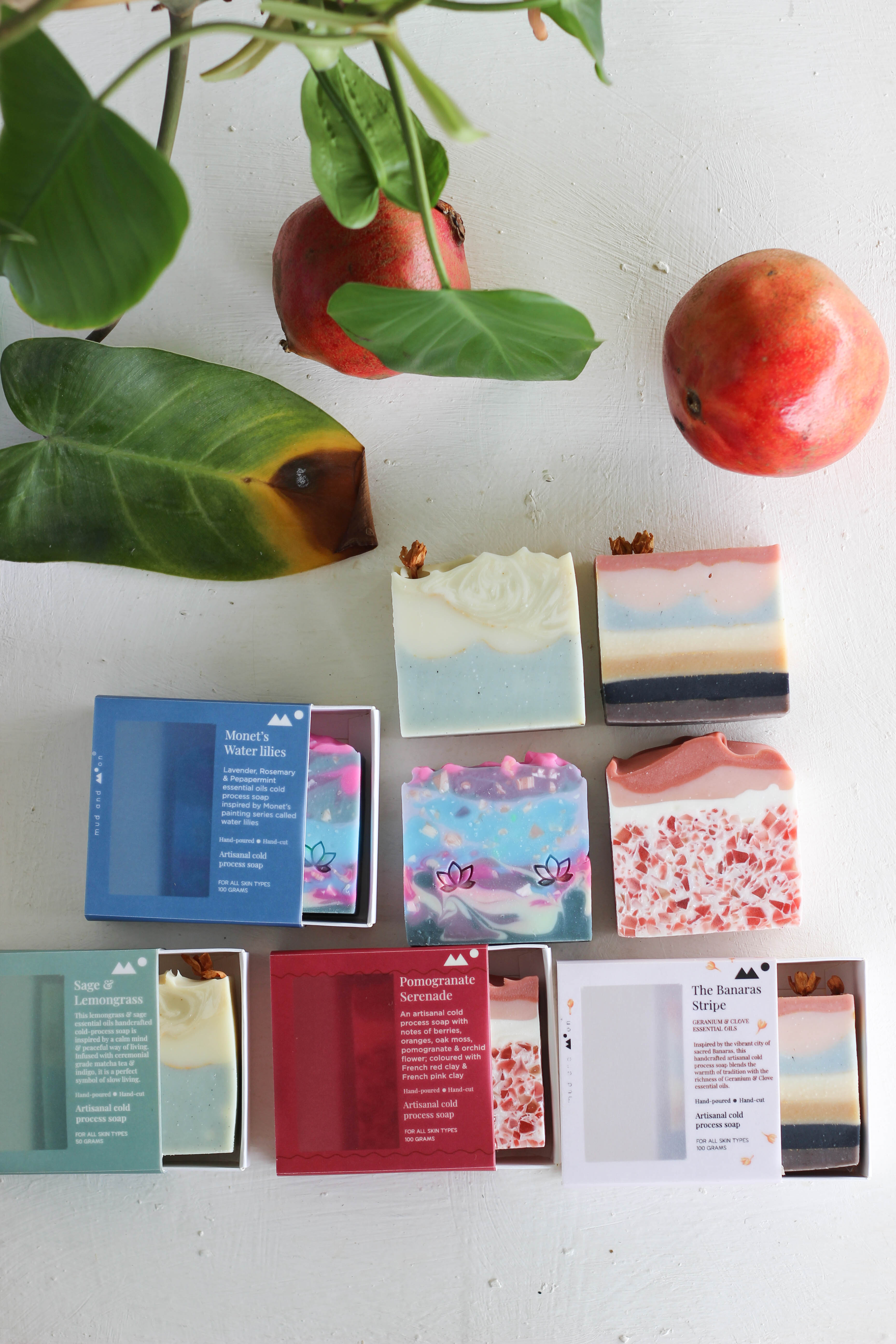 4) The Banaras Stripe – Inspired by the vibrant city of sacred Banaras, this handcrafted artisanal cold process soap blends the warmth of tradition with the richness of Geranium & Clove essential oils.