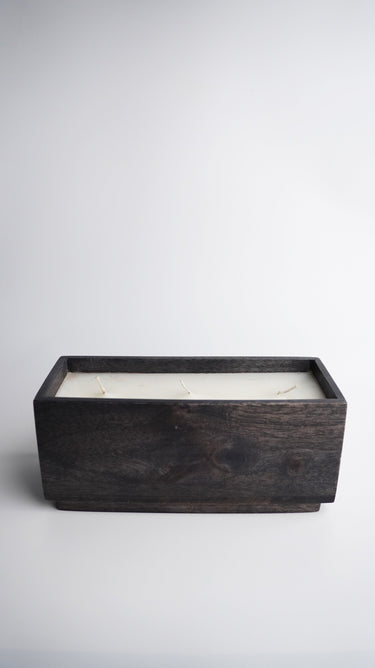 Elevate your space with this handcrafted wooden candle block, a seamless blend of form and function. Carved from rich, dark-stained hardwood, its minimalist rectangular profile is thoughtfully designed to enhance modern interiors. The container holds multiple wicks, offering a long, even burn that adds a calming ambience to any room.
