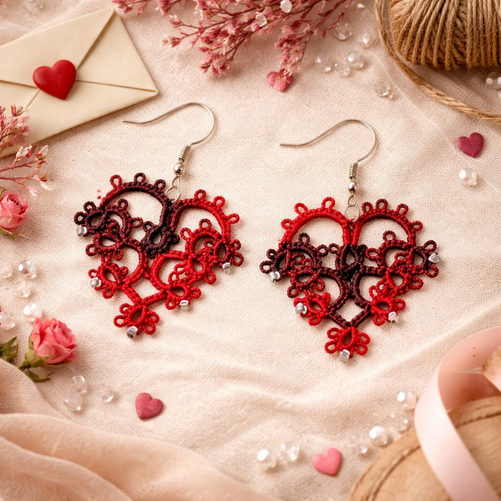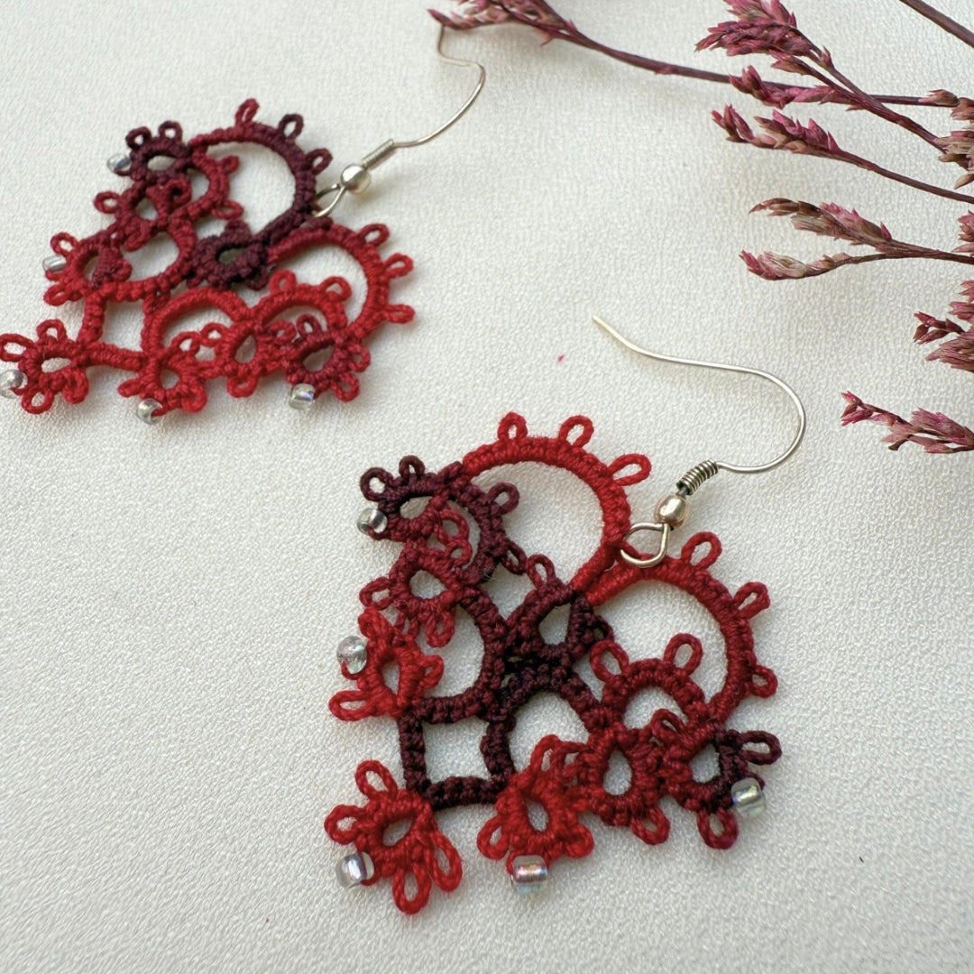 Beautifully crafted with cotton thread and delicate beads using the age-old technique of tatting, these earrings feature intricate lacework created knot by knot with shuttle tatting. Handmade with great care, each pair is exclusively crafted using this traditional method. These super cool, extremely lightweight earrings are versatile enough to complement any attire, ensuring you can wear them all day with ease. As artisanal items entirely made and decorated by hand, small imperfections denote the originality of the product. So, hop on board and add a touch of artisanal charm to your ensemble!