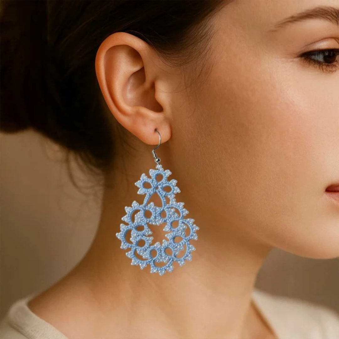 Beautifully crafted with cotton thread and beads using the age-old technique of tatting, these earrings feature intricate lacework created knot by knot with shuttle tatting. Handmade with great care, each pair is exclusively crafted using this traditional method. These super cool, extremely lightweight earrings are versatile enough to complement any attire, ensuring you can wear them all day with ease. As artisanal items entirely made and decorated by hand, small imperfections denote the originality of the product. So, hop on board and add a touch of artisanal charm to your ensemble!