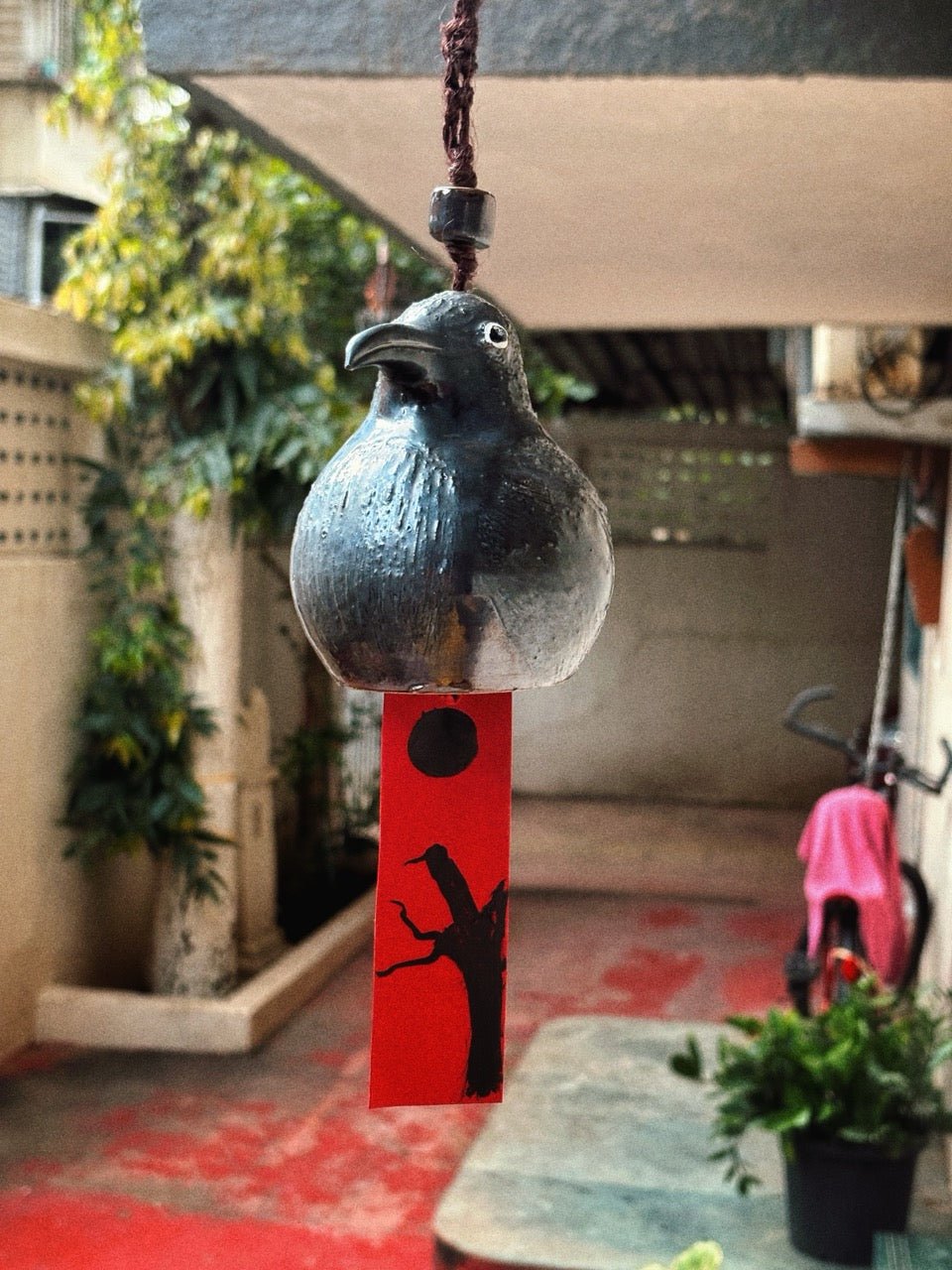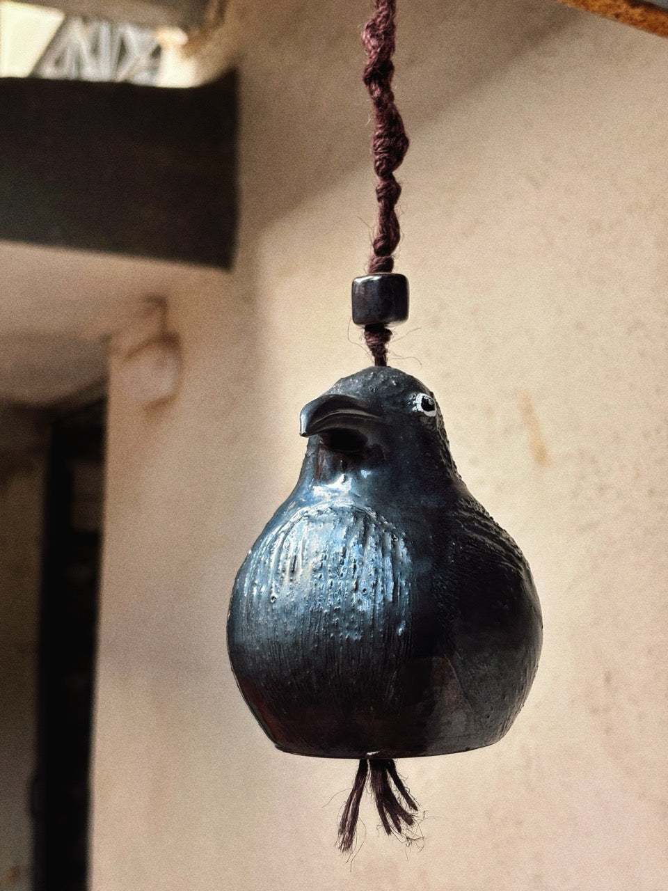 Mysterious and majestic, this raven bell is for those who love the quiet strength of the shadows. Made from glazed stoneware ceramic and strung with a painted paper tail that dances with the breeze to create its gentle chime, it’s a striking piece that blends elegance and edge.