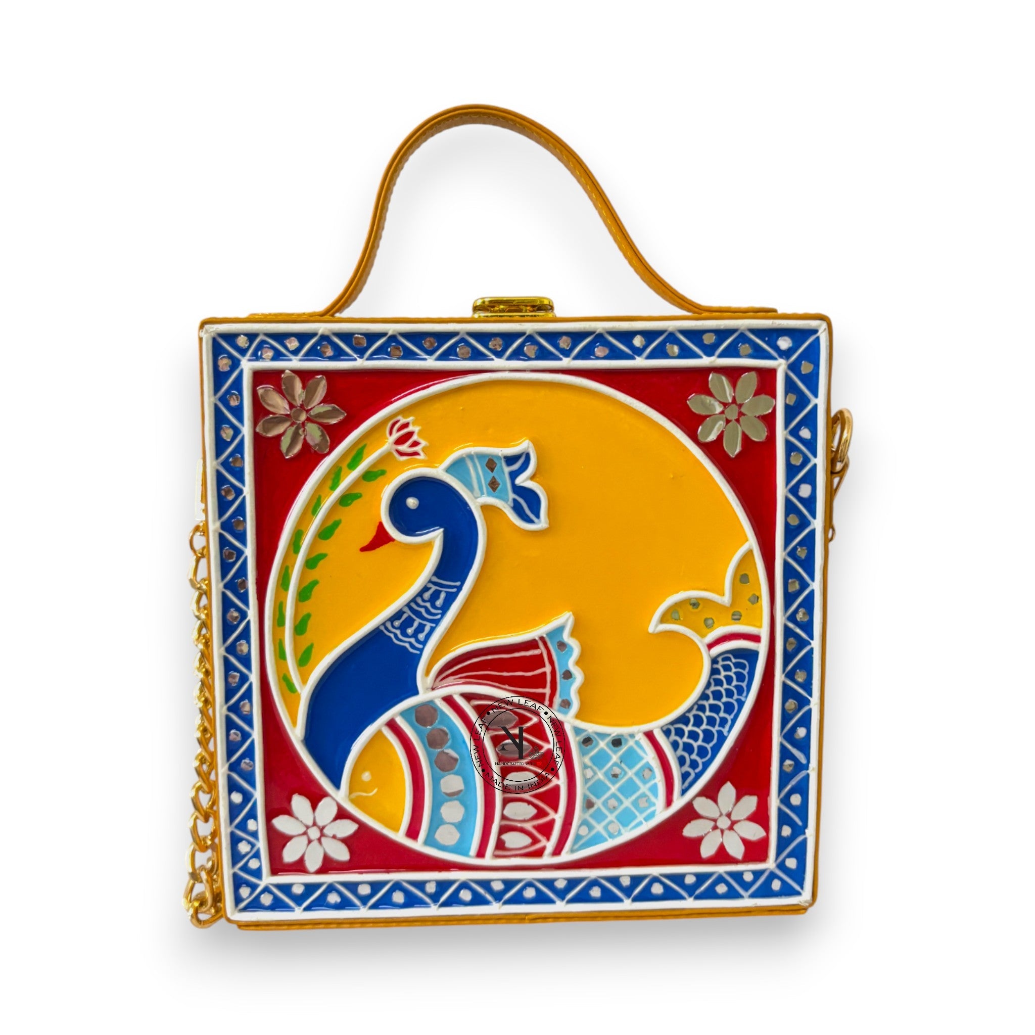 Pink Peacock Lippan Art Handcrafted Box Bag