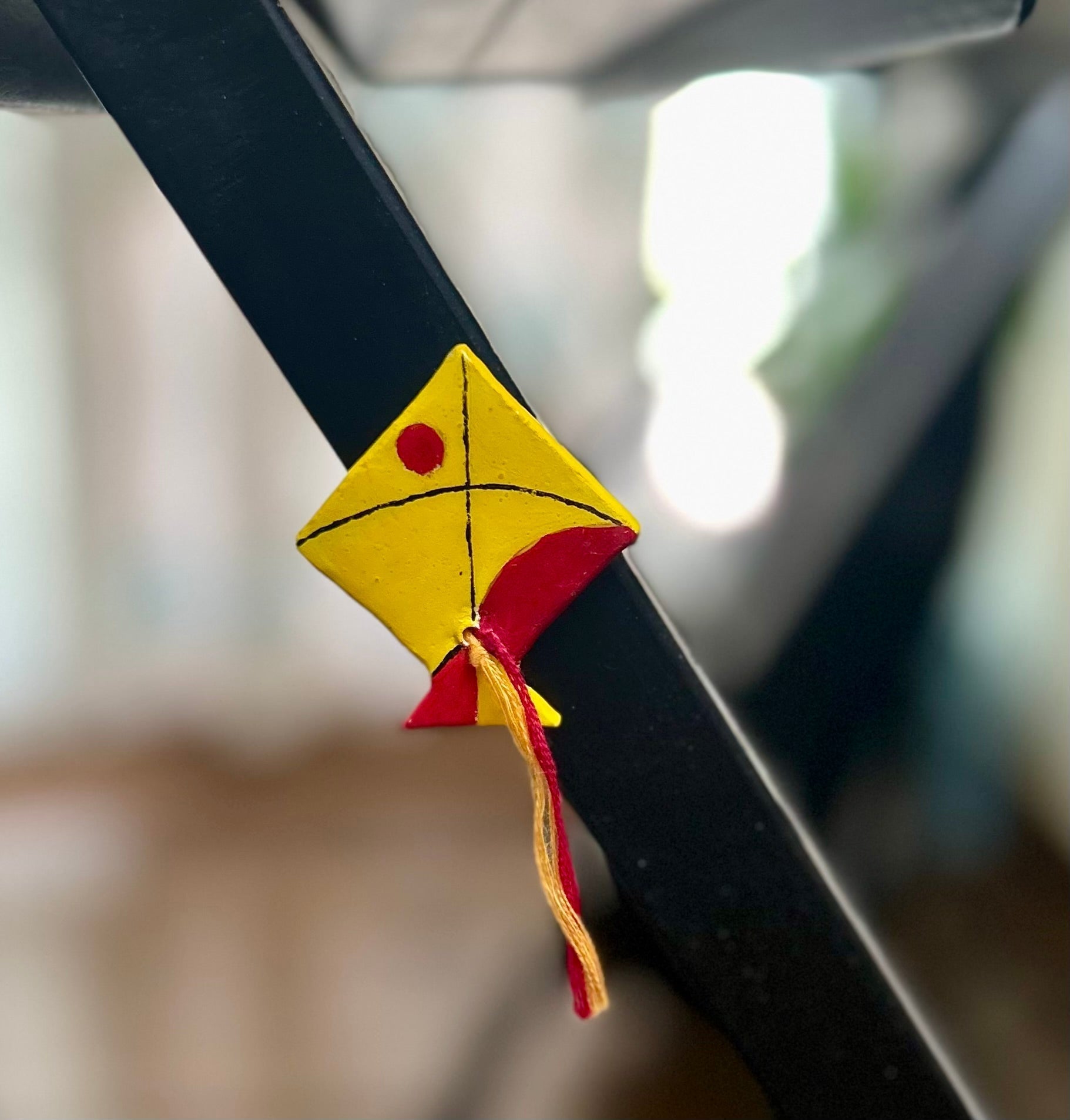Handmade kite magnet crafted from air-dry clay and detailed with fine hand-painted and embroidered work. Inspired by childhood summers and paper kites in the sky, it carries a soft sense of nostalgia. Lightweight, durable, and perfect for adding a handmade touch to your space.