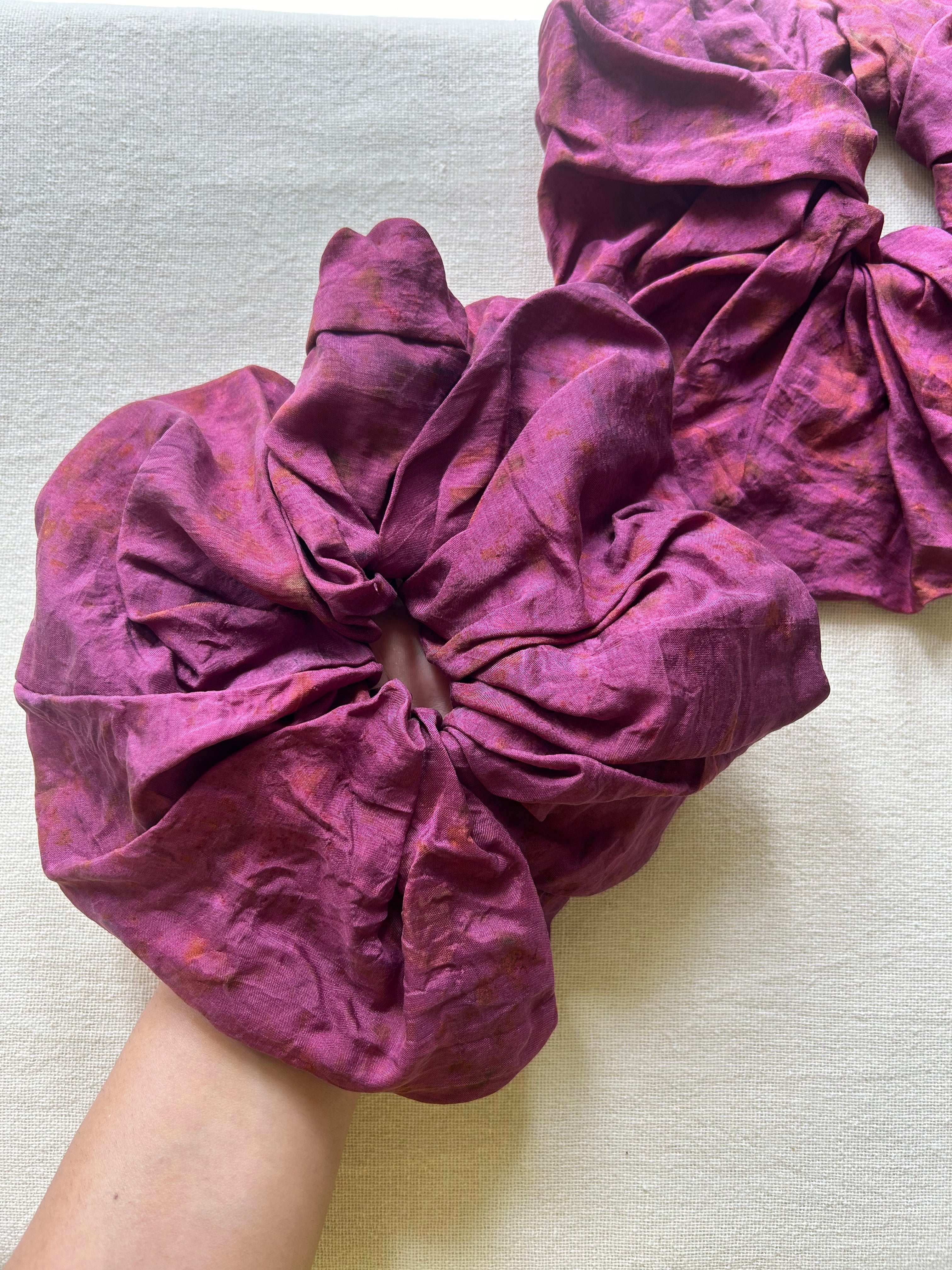 Just like our regular scrunchies, these are plant-dyed, making them gentle on the environment as well. Crafted from fabric cut-offs and trims, they are made with sustainability in mind, reducing waste and creating something beautiful from what might otherwise be discarded. Due to this process, quantities are limited, making each piece unique.