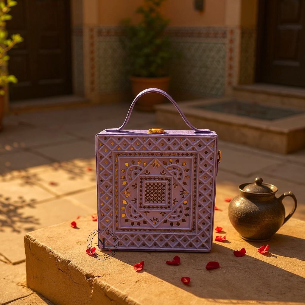 Violet Mirage Lippan Art Handcrafted Box Bag Sling