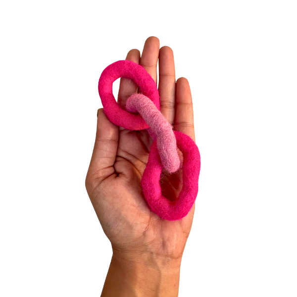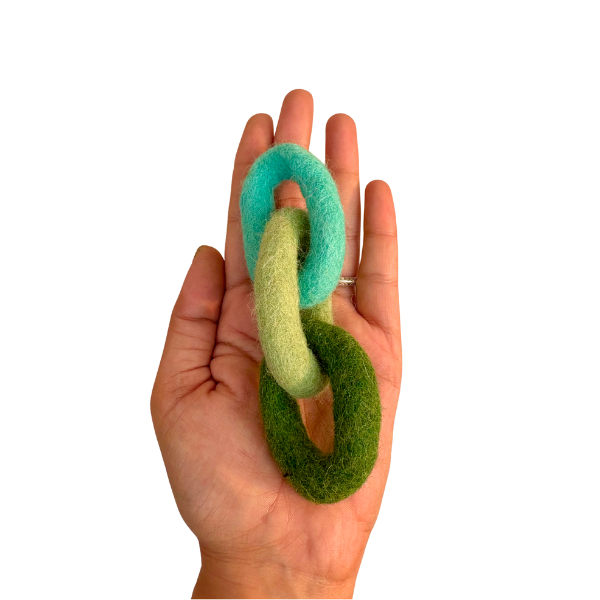 The Felt Chain Link Toy is the purrfect toy for cats who love to tug, chase, and play. Hand-felted from 100% merino wool by women artisans in Nepal, it’s soft, safe, and sustainably made to keep playtime joyful and worry-free. Infused with premium American catnip, it keeps your fur bbs curious, excited, and happily engaged! Each interlinked ring is lightweight, making it easy for your cats to grab, toss, and carry around. The natural wool texture keeps their paws and teeth busy, encouraging healthy, active play while staying gentle on them and the planet.