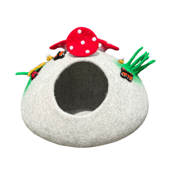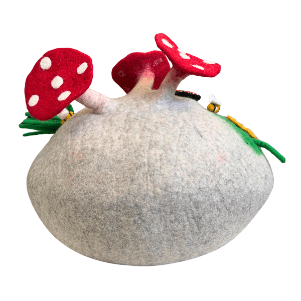 Hand-felted with 100% Merino wool, our Magic Mushy Cat Cave is a cozy, safe, and whimsical hideout your feline will adore. Naturally hypoallergenic, antimicrobial, and temperature-adjusting, it keeps your cat warm in the winter and cool in the summer — all without a trace of harsh chemicals or plastic. Each cave is lovingly handmade by skilled women artisans in Nepal, using time-honoured felting techniques passed down through generations.