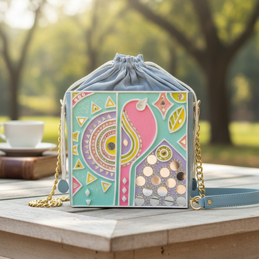 Pastel Peacock Lippan Art Potli Handcrafted Sling Bag