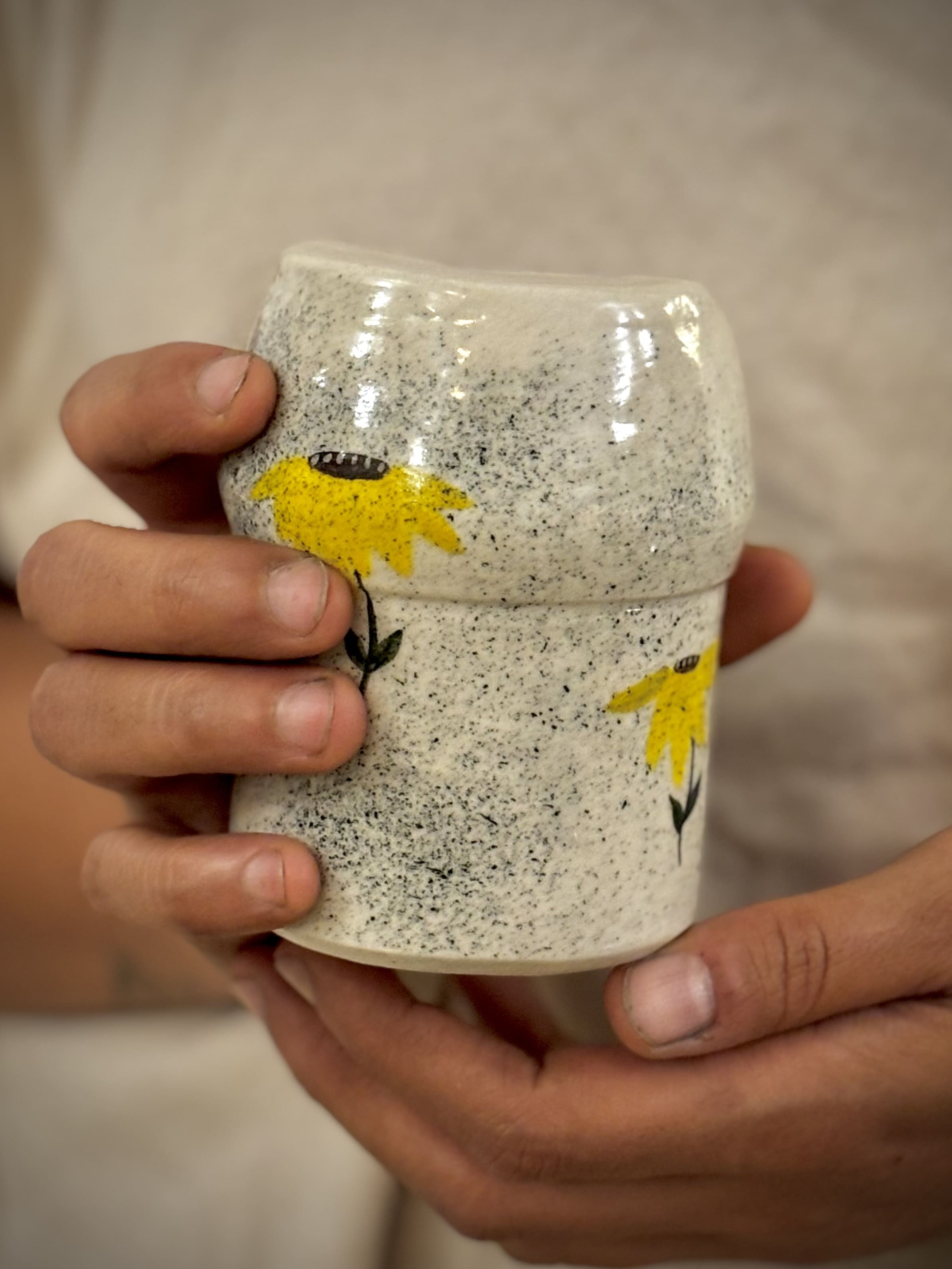 Embrace your adventures with the Wander Cuppa, a handmade ceramic to-go cup designed for coffee, tea, or lemonade. Say goodbye to disposable and plastic cups and enjoy a unique, eco-friendly alternative that’s both functional and artistic. The bright designs will spark dreamy explorations and energize your day.