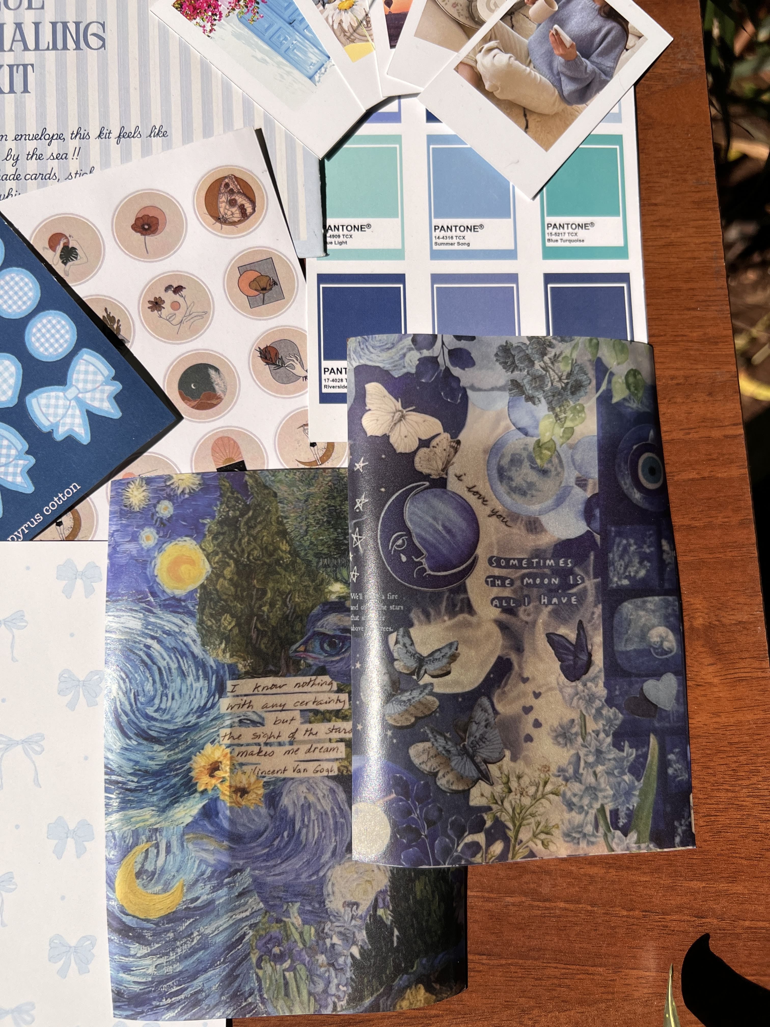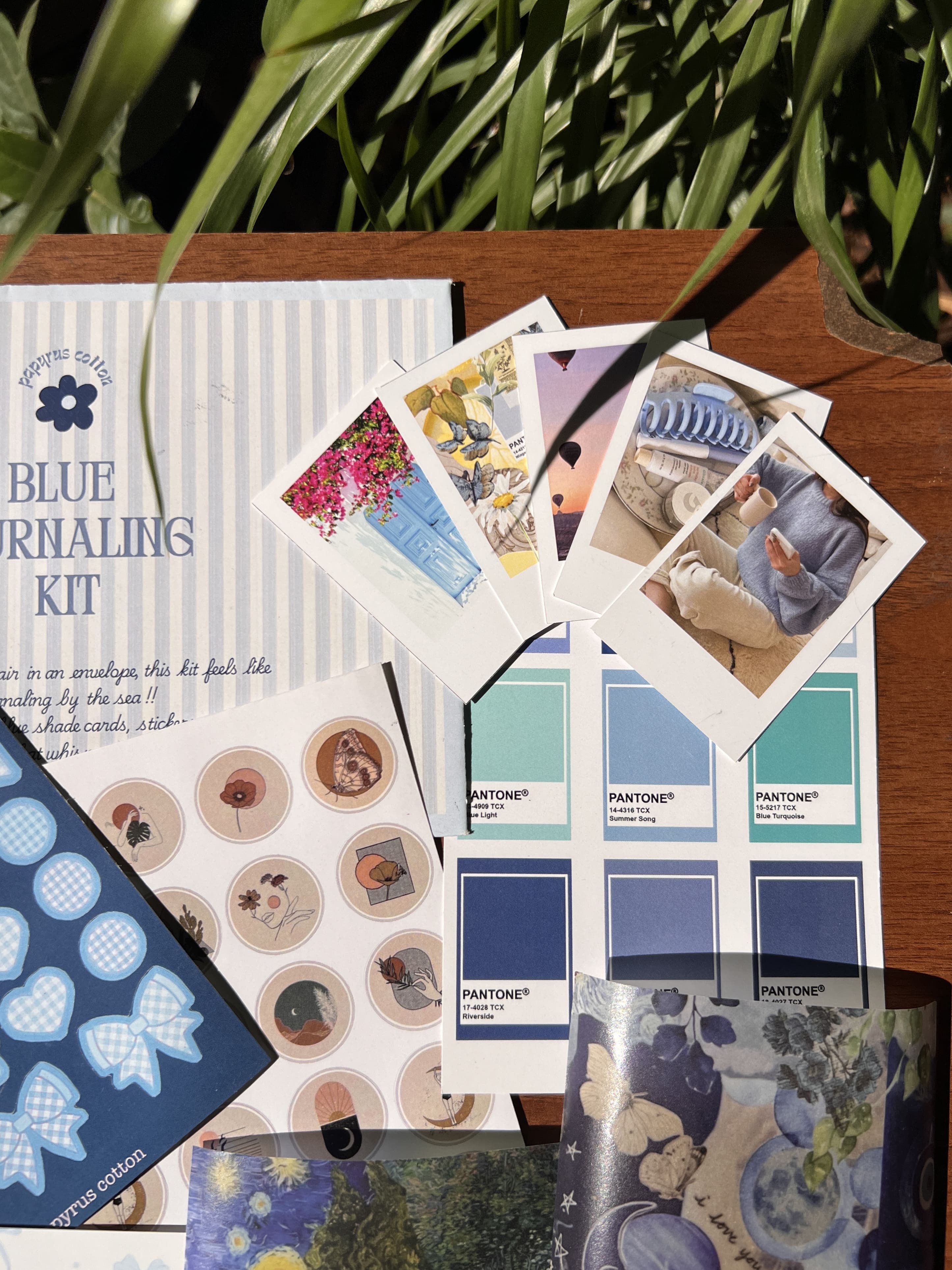 Breezy like ocean air in an envelope, this kit feels like journaling by the sea !! Filled with calm blue shade cards, stickers, patterns, polaroids... that whisper wanderlust. Make something beautifully you.