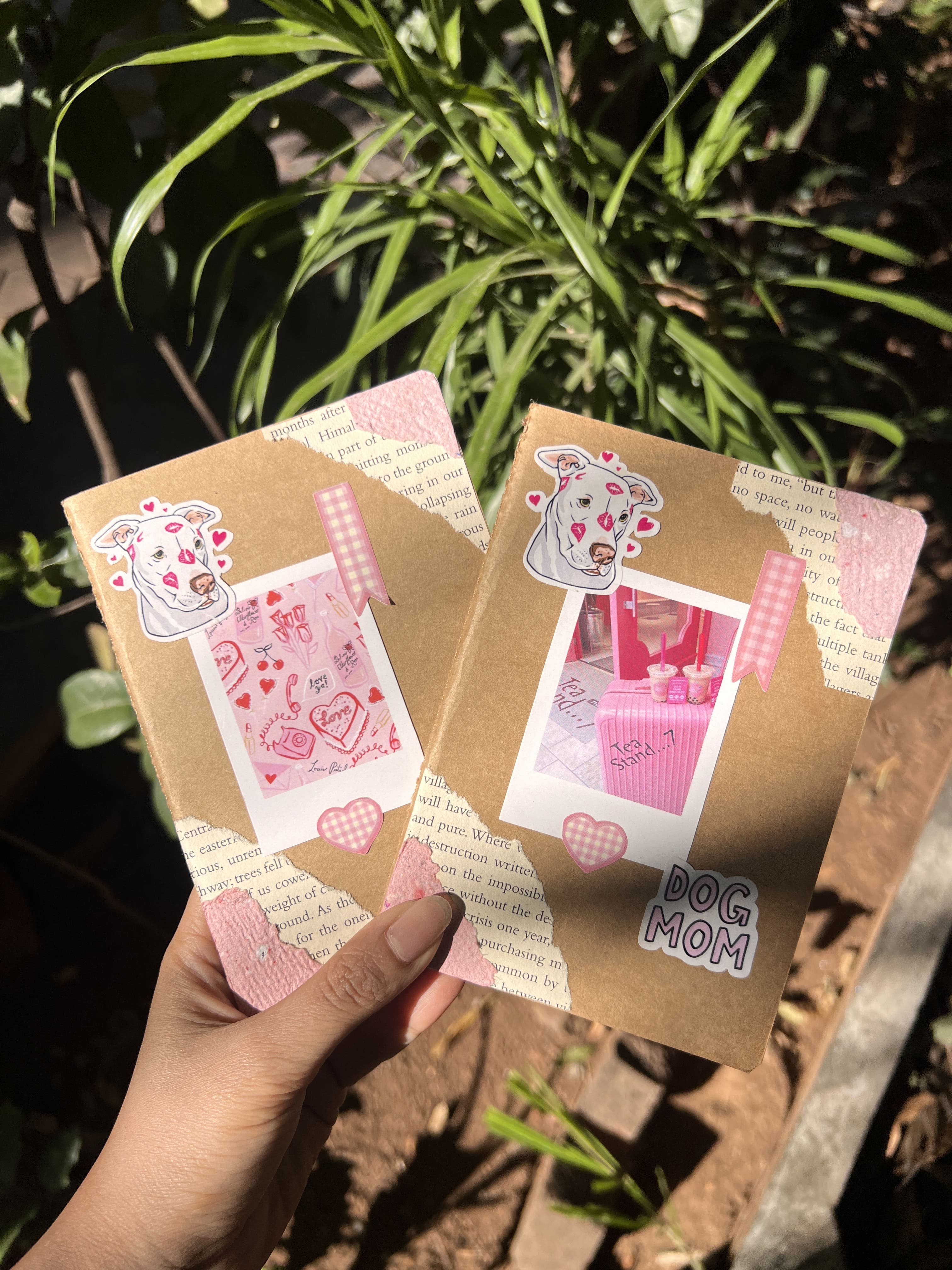 Made with upcycled kraft paper and soft pink accents, collage details, and a warm handmade feel. Perfect for journaling, memory-keeping, doodling, or gifting to a fellow dog lover.