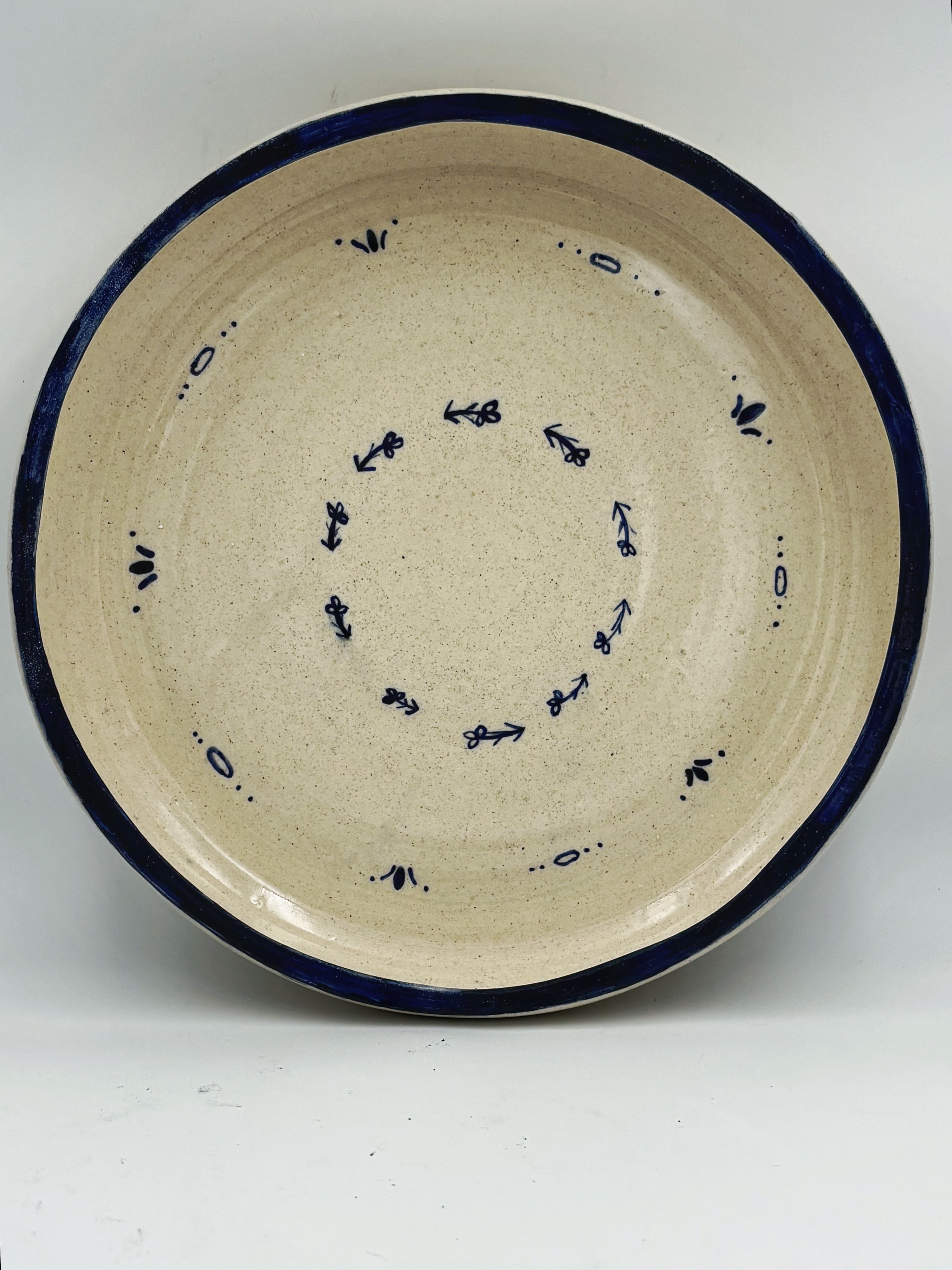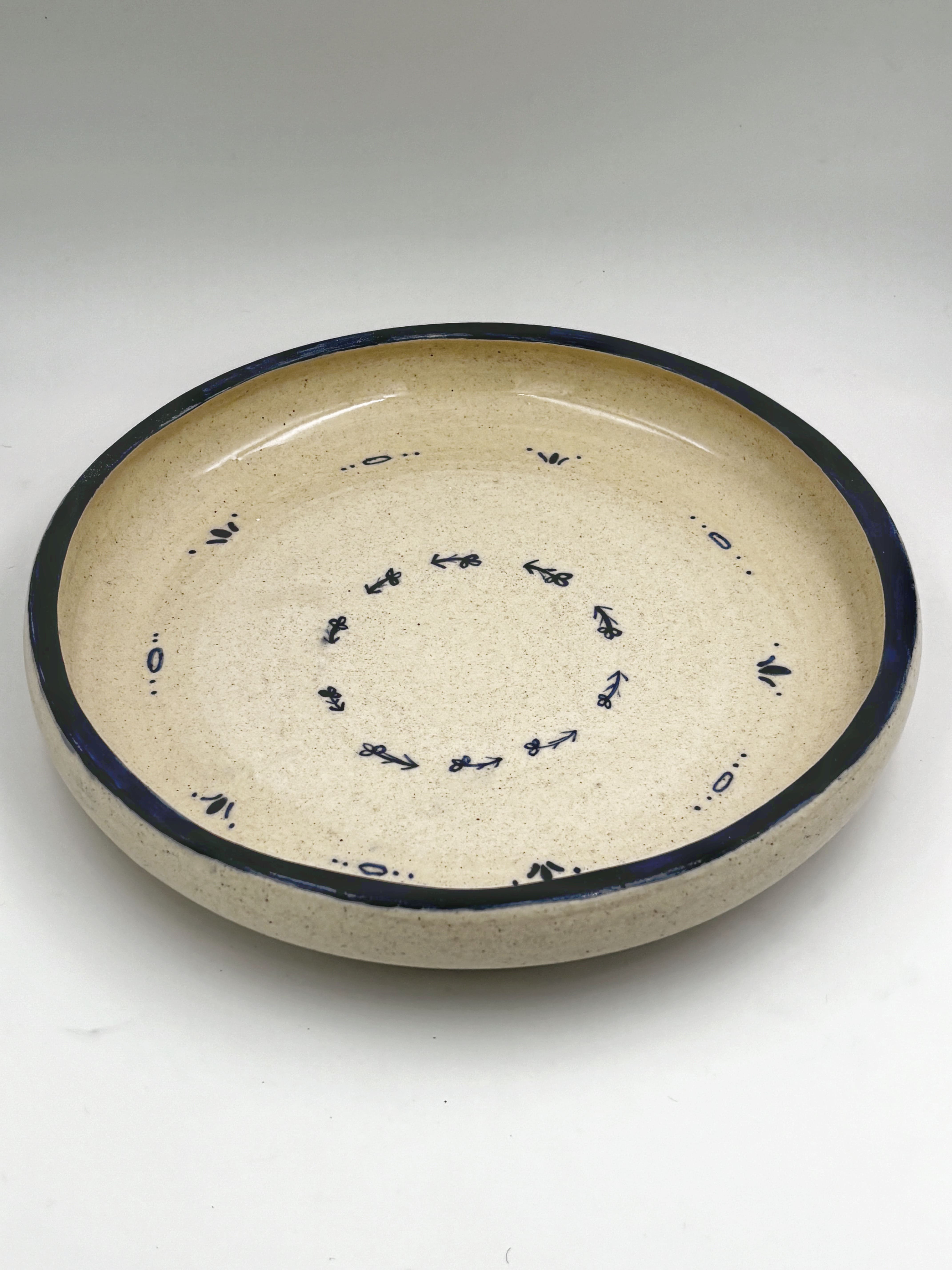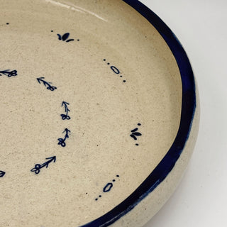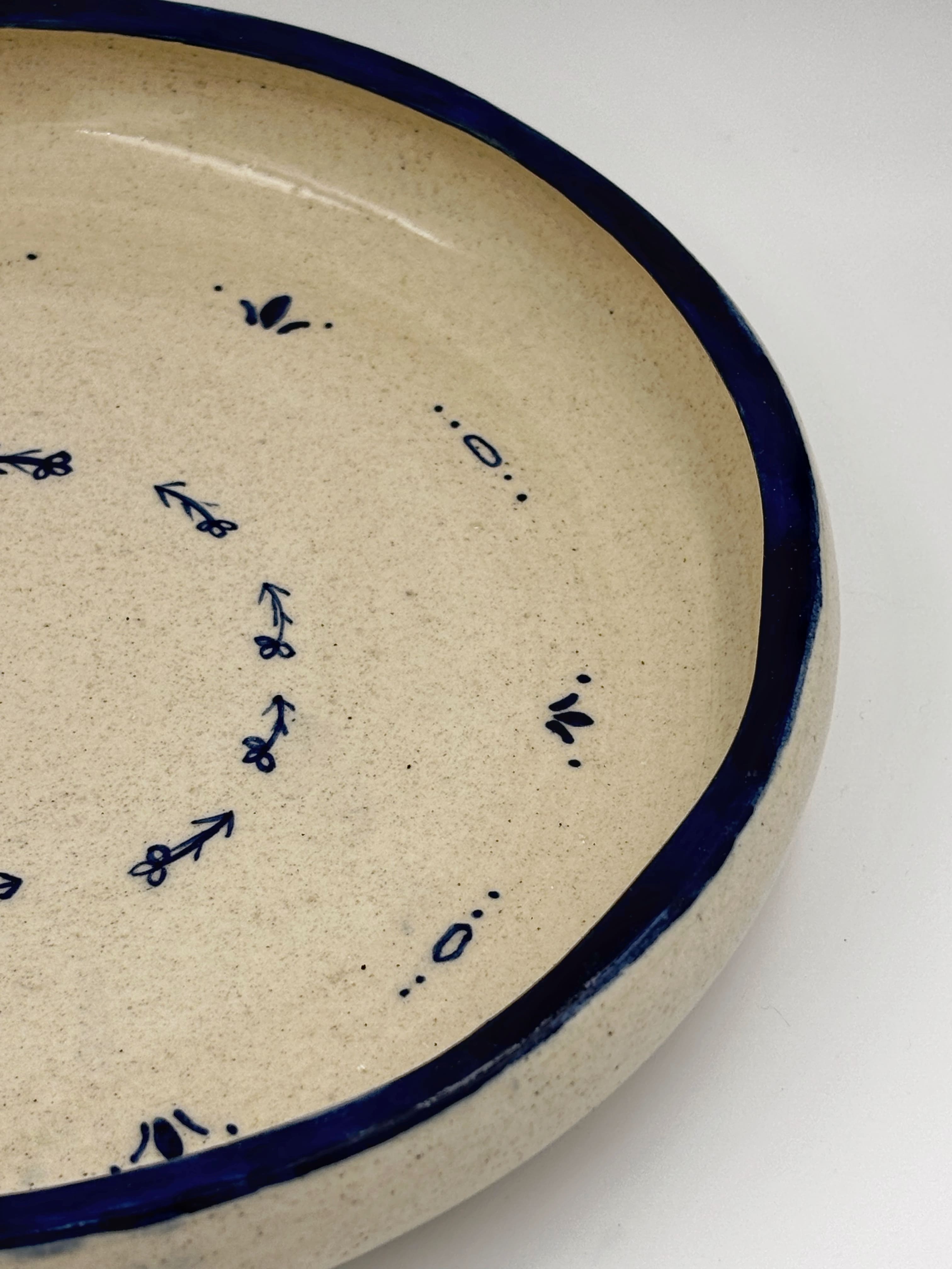 Rooted in a minimal Indian traditional motif, this piece features delicately hand-painted indigo-motifs that are a nod to timeless design. Set against a gently speckled clay surface with a deep indigo rim, this platter is as functional as it is poetic. Ideal for serving or simply resting beautifully on your table, it's a quiet nod to heritage.
