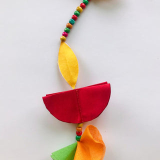 Introducing our Upcycled Fabric Diya String, the perfect choice for eco-conscious celebrations. Handcrafted with handmade fabric diya and wooden beads, these sustainable and reusable decorations add a whimsical touch to your festivities. This Strings not only add a festive touch to your Festive decorations but also offers a sustainable and reusable alternative to balloons, all while being completely plastic-free.
