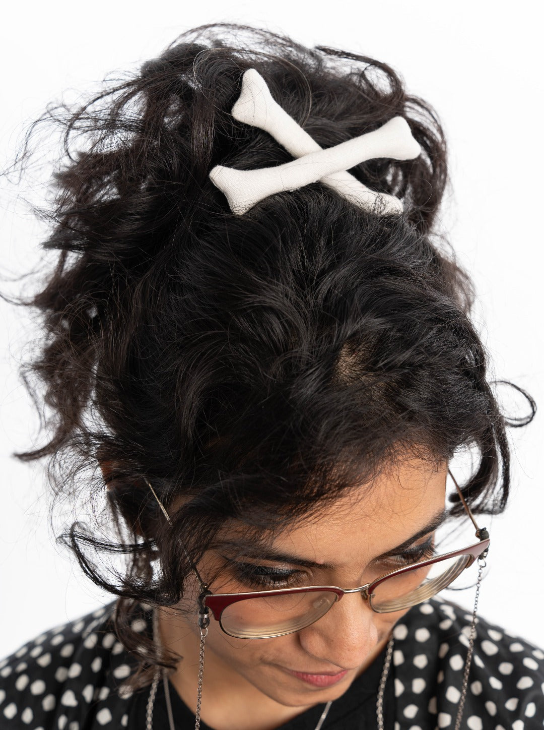 The most fun, versatile accessories! Choose from a variety of handcrafted chakhna to add a little something extra to your outfit. Pin it on a bag, on a curtain, in your hair, anywhere!ย  Made from 100% textile waste ! ๐Ÿ˜ฌ Stuffed with recycled rPET from plastic water bottlesย