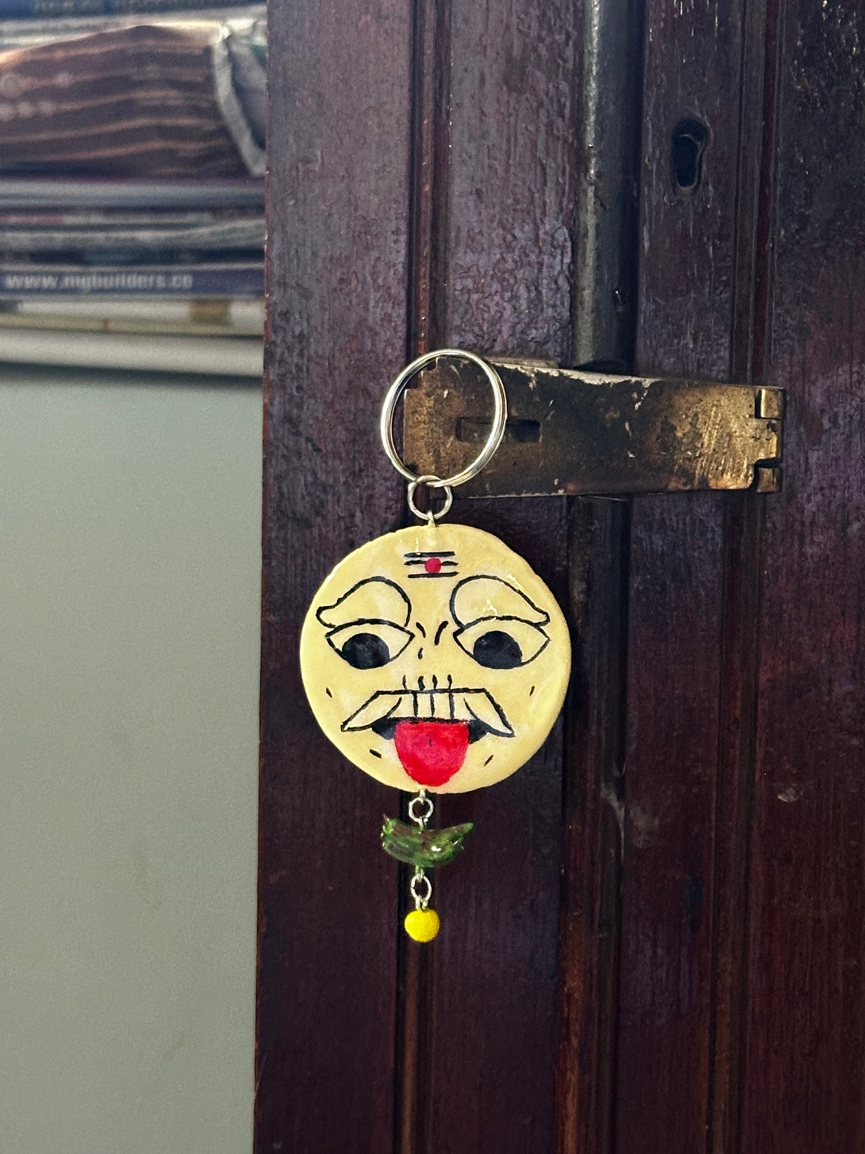 ward off negativity in style with our handcrafted Drishti keychain. Made with premium air dry clay and inspired by native designs, each piece is meticulously shaped and painted by hand, blending tradition with modern artistry. Perfect for keys, bags, or gifting, this keychain carries cultural charm and positive vibes wherever you go.