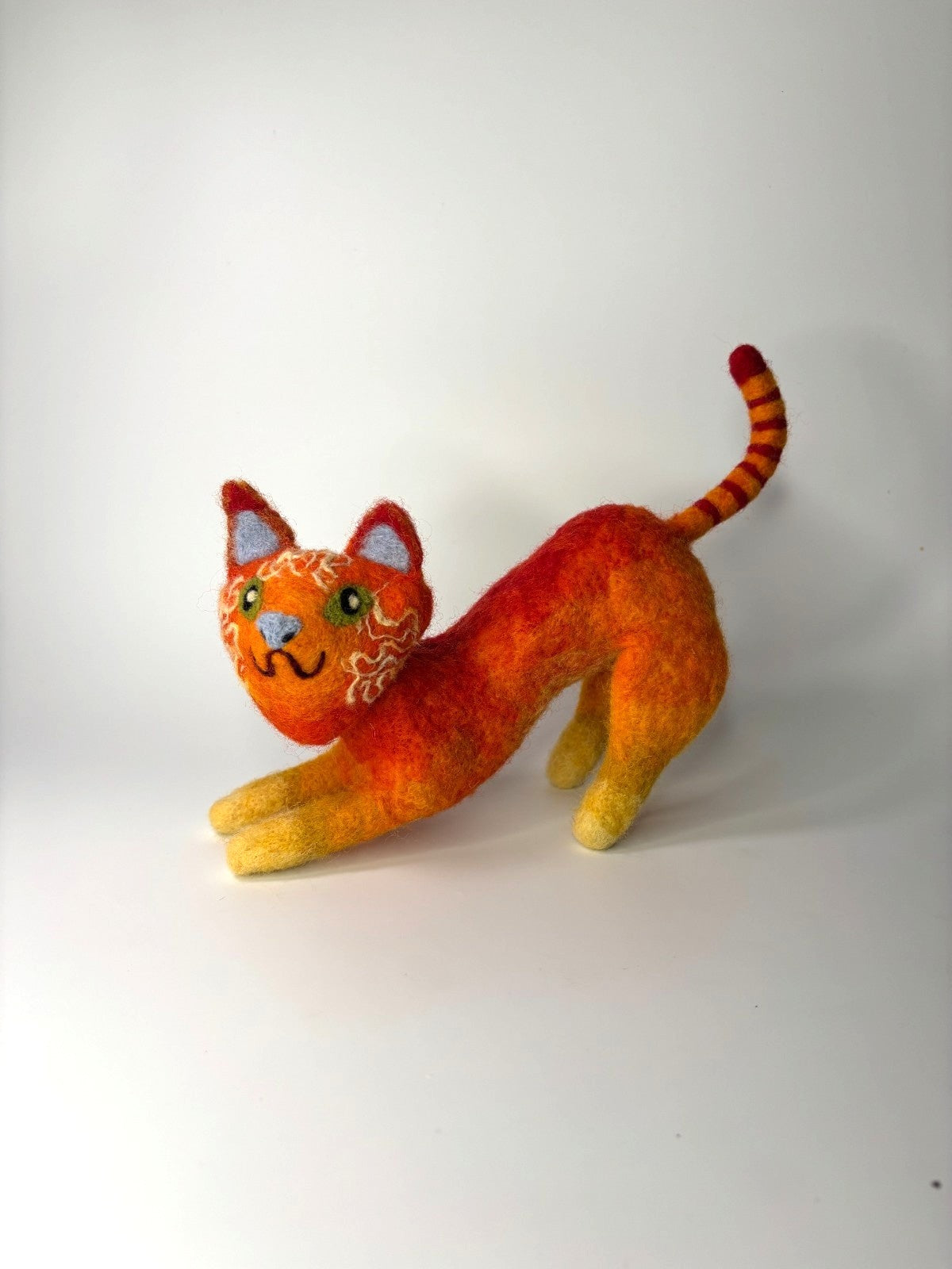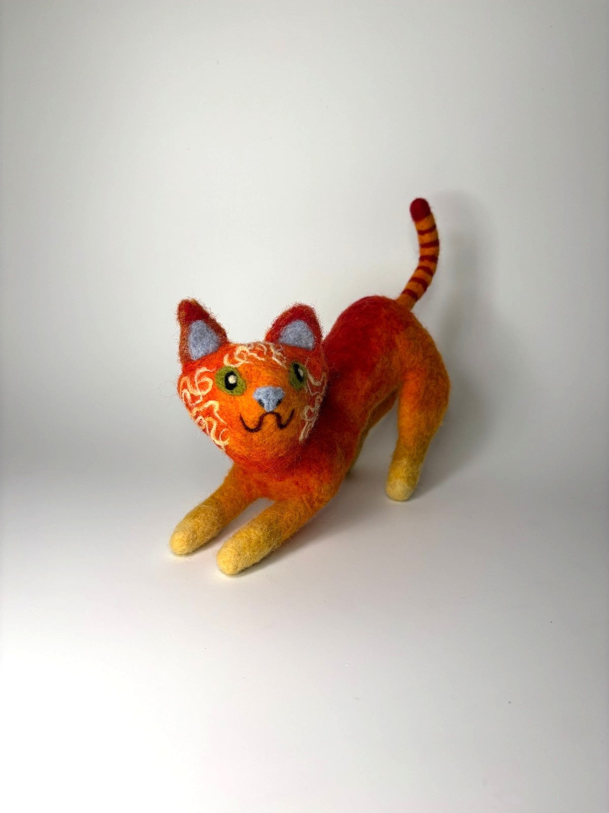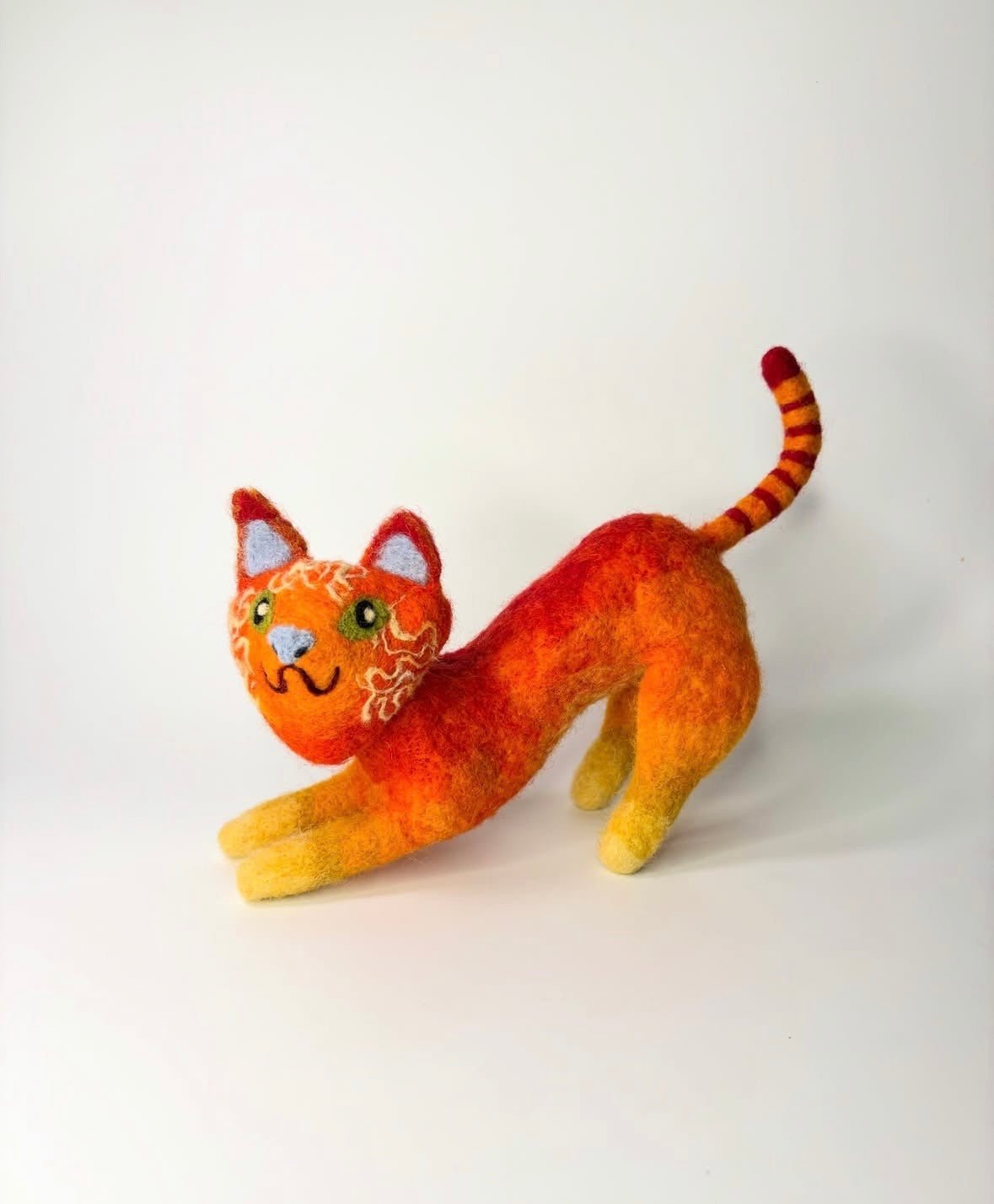 FIRE CAT is a handmade needle felted soft sculpture made using 100% sheep's wool.