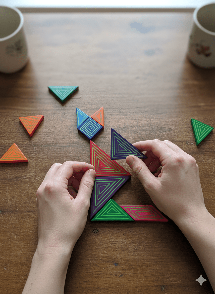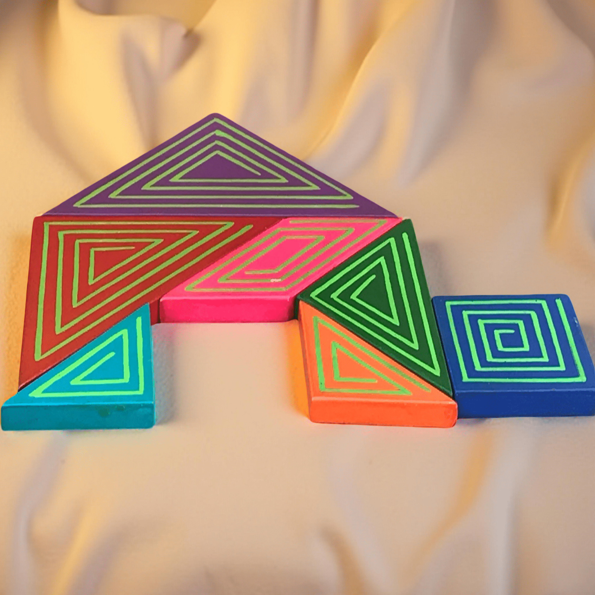 Tangram is a seven piece puzzle who's origins can be traced to the Orient, later spreading westward. While it's often said to be ancient, its existence has only been verified as far back as 1800.