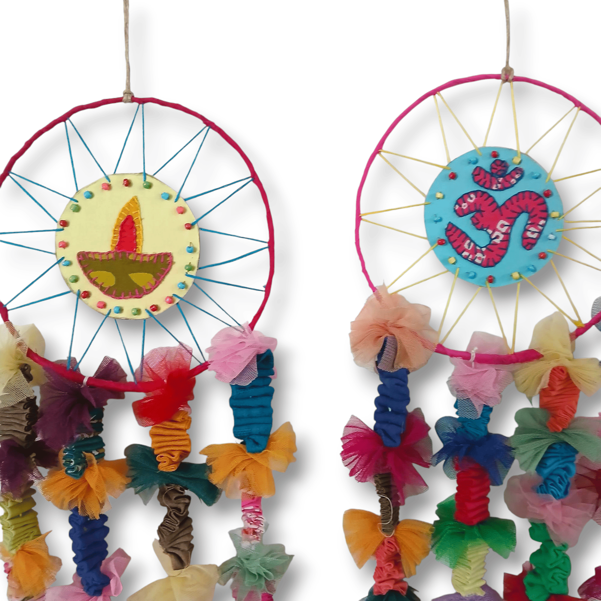 Unlike balloons that contribute to plastic waste and harm the environment, our Upcycled Om Diya Dreamcatchers is made from upcycled textile waste. This means you can enjoy the festivities without worrying about the negative environmental impact. By choosing this, you actively participate in reducing plastic waste and embracing a more sustainable approach to celebrations.