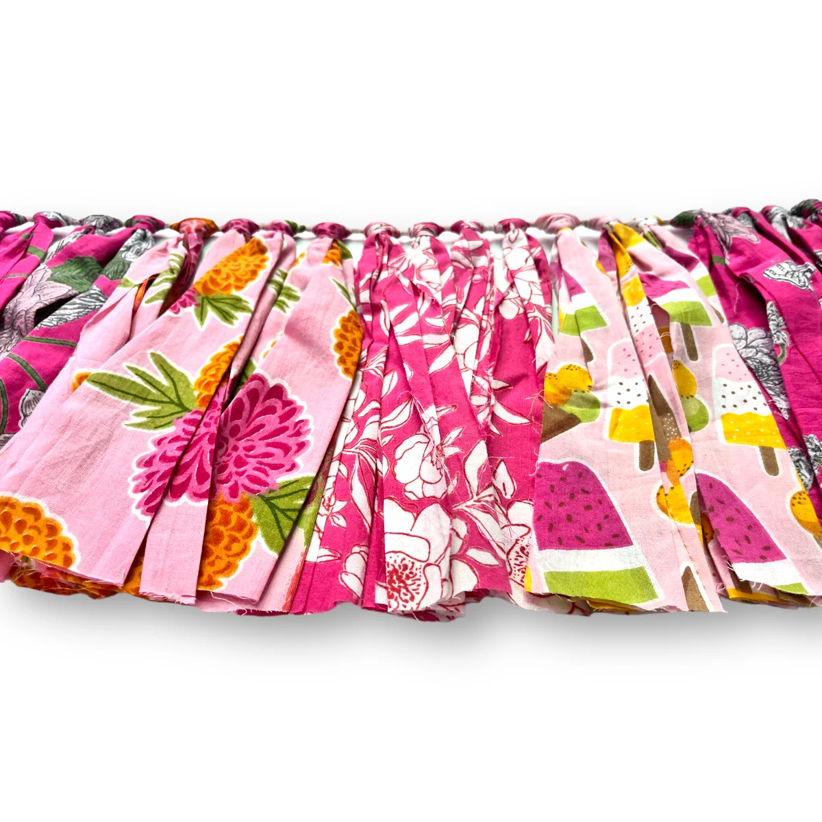 Pink Fringe Streamer Garland: Playful Textures Accompanying the bunting is our Pink Fringe Streamer Garland, a dynamic and fun addition that brings a delightful burst of texture and color. Its fringes dance with the slightest breeze, adding life and energy to your event's ambiance. It’s perfect for creating stunning backdrops, enhancing entryways, or simply adding a playful touch to the party scene.