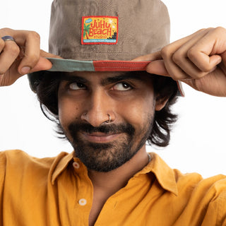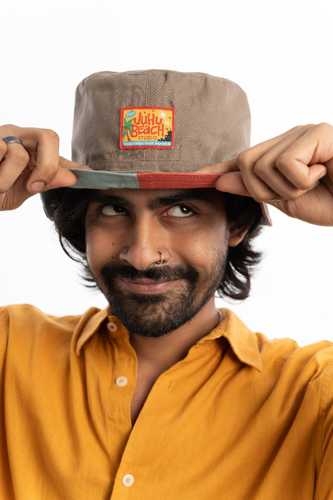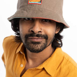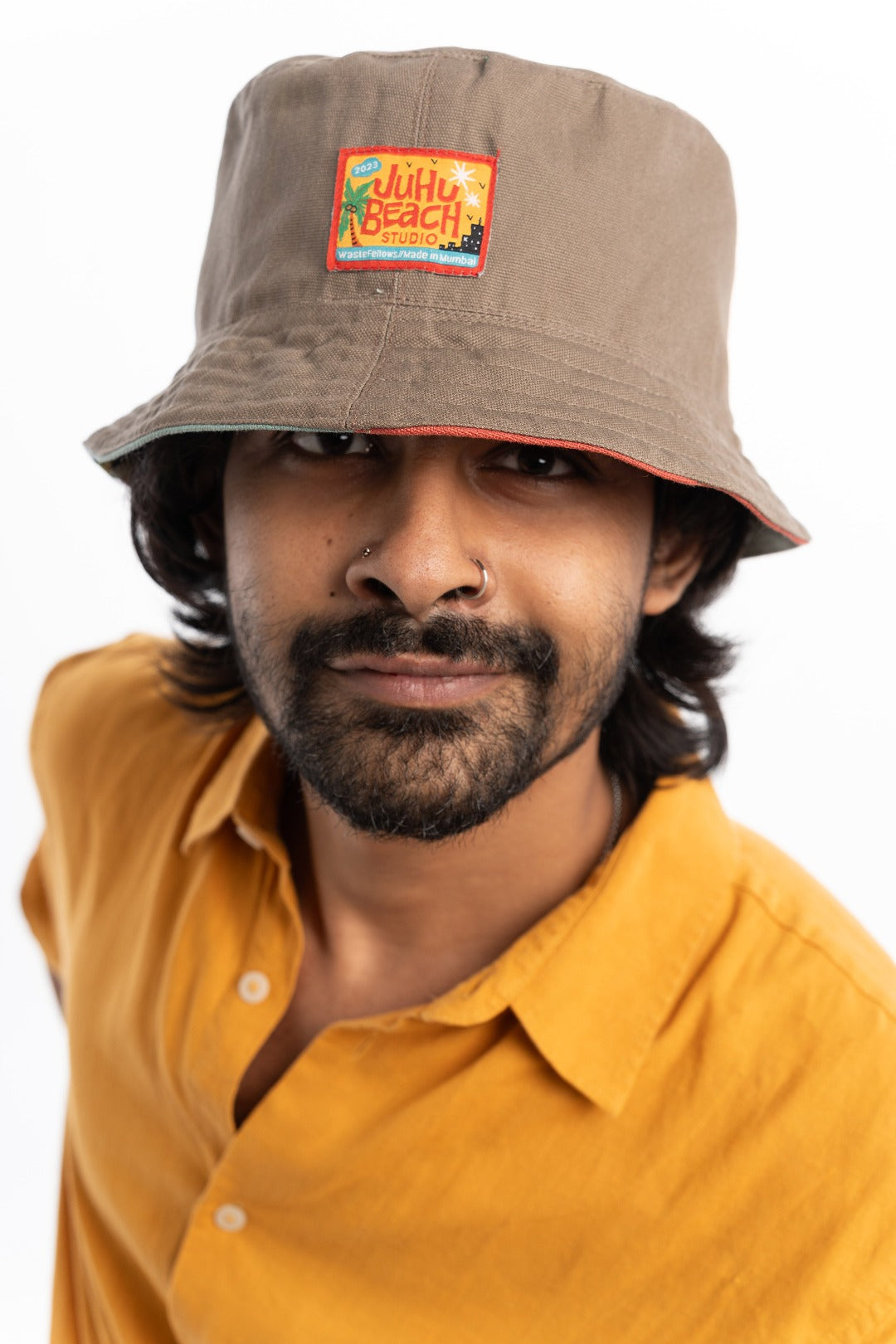 The hat is reversible! with a soft chocolate brown on the inside also with our lovely new label. Wear this hat with your block printed, linen, woven cotton shirtss ⚘🐅