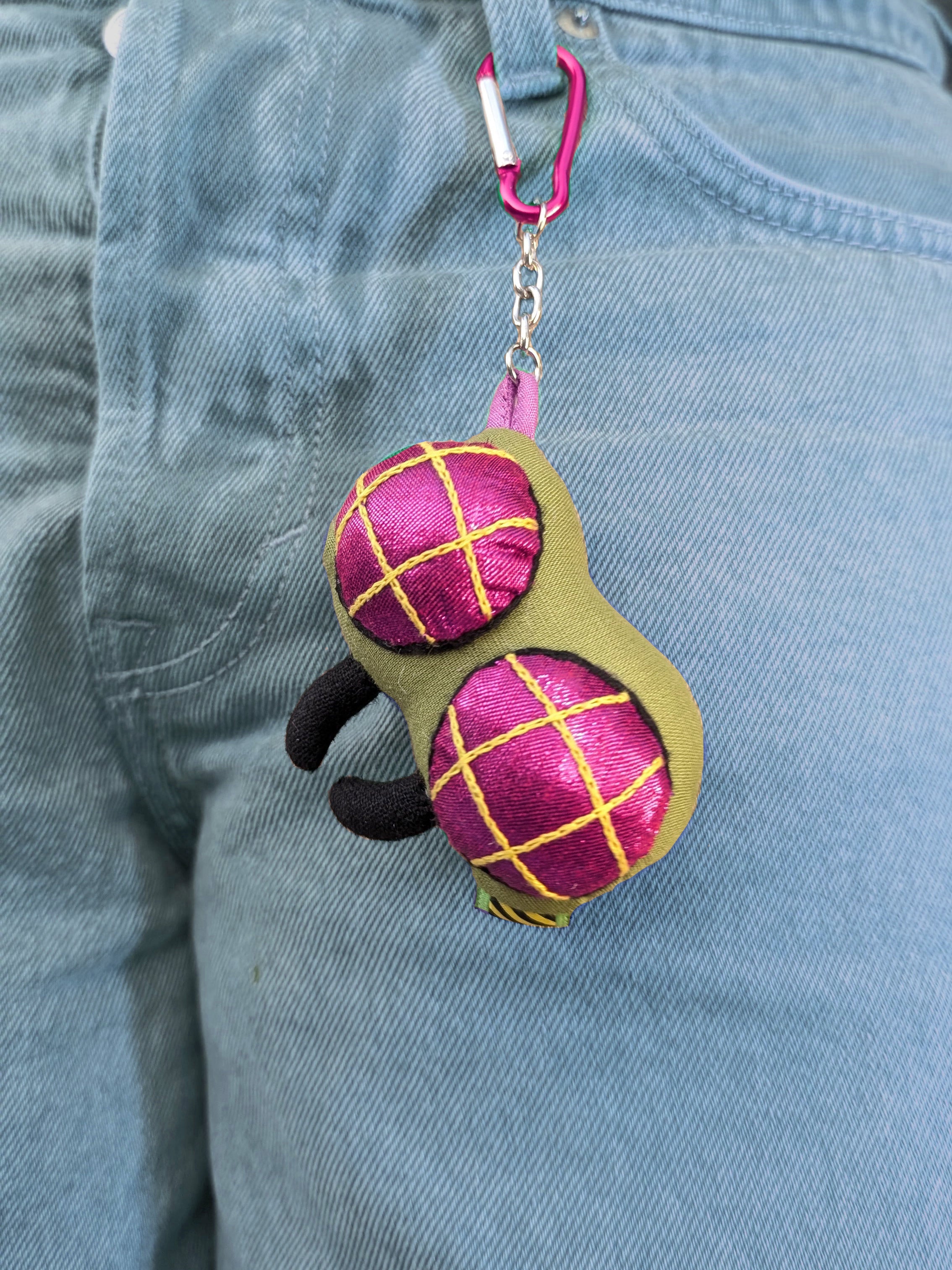 This bag charm was inspired by him. Its appliqued (new technique for us) and embroidered and looks so beautiful and squishy 🍑