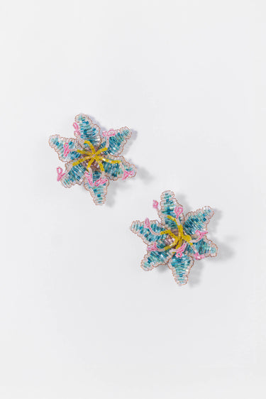 The "Blue-Rise" earrings, in shimmering turquoise tones, are crafted using the intricate French beading technique, where delicate glass beads come together to elevate an ordinary day into a rising occasion. Designed to make you shine even more, this dainty pair effortlessly adds charm to your look, making it the perfect, easy-to-carry accessory. Each pair is made to order, handwoven with care and intention. Please allow 3 to 4 days for your piece to be crafted and shipped.