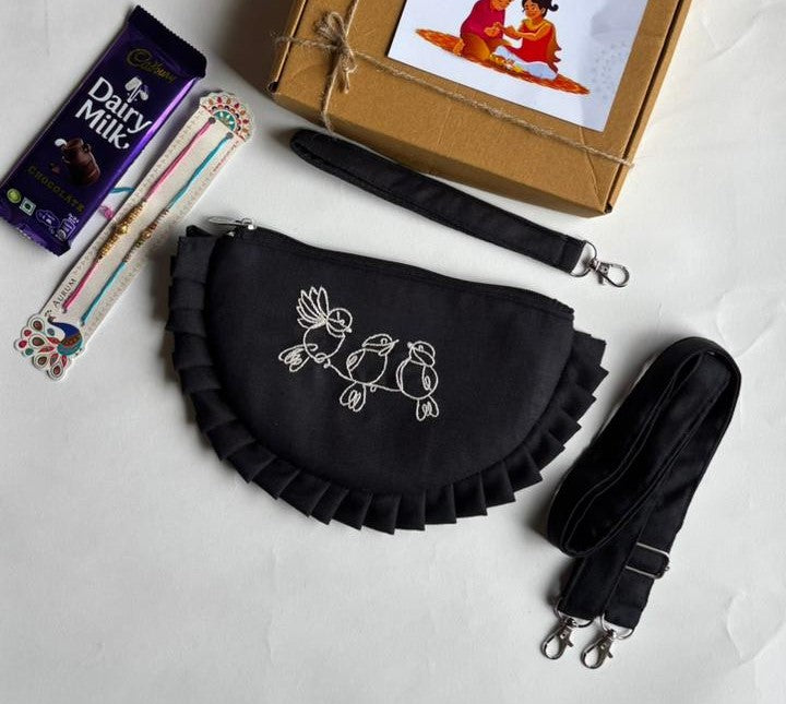 Designed for versatility, it comes with detachable sling and wristlet straps, allowing you to seamlessly transition from day to evening — carry it as a sleek clutch, a graceful pouch, or a contemporary sling bag. The refined pleated border adds a couture-inspired finish, making it the perfect accessory for occasional wear, celebrations, or thoughtful gifting.