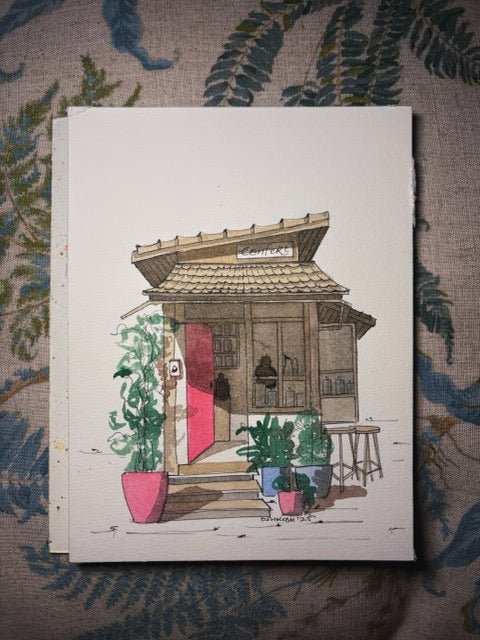 Delicate watercolor cafem just 1 m deep and clad in soy‑aged copper patina, this minimalist coffee stand blends tradition and modern craft. A cozy, travel‑inspired piece for fans of Japanese design and subtle hues.