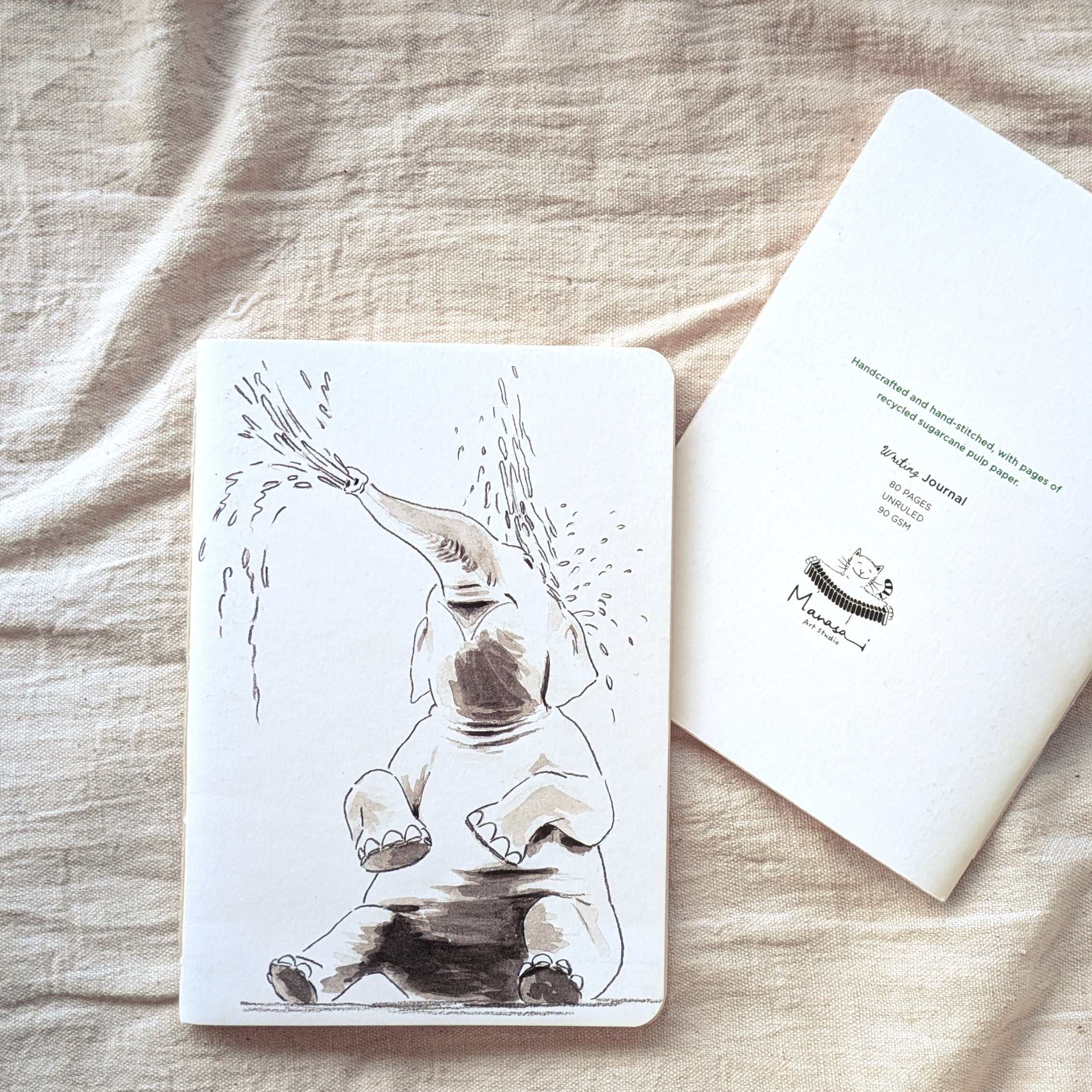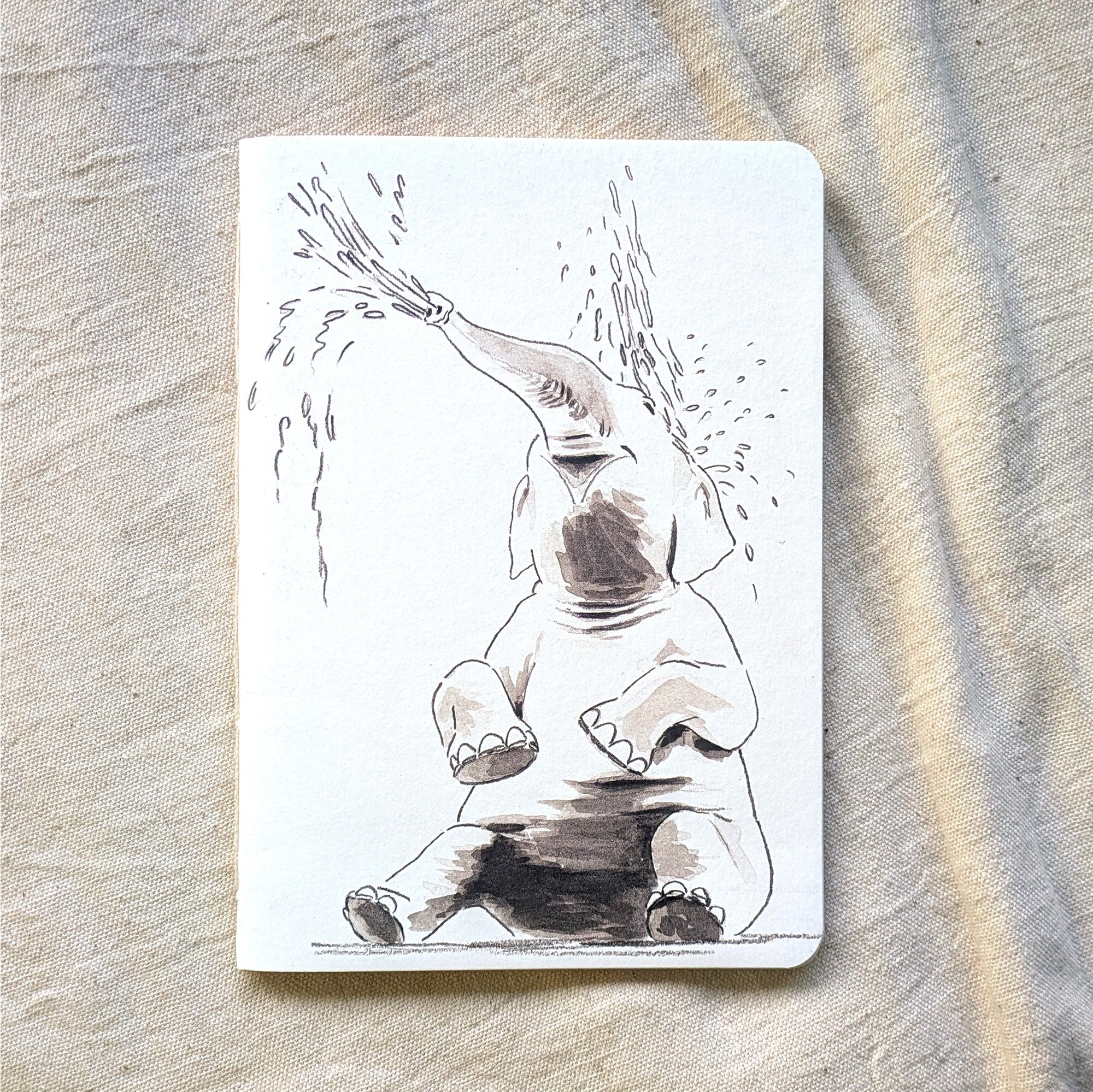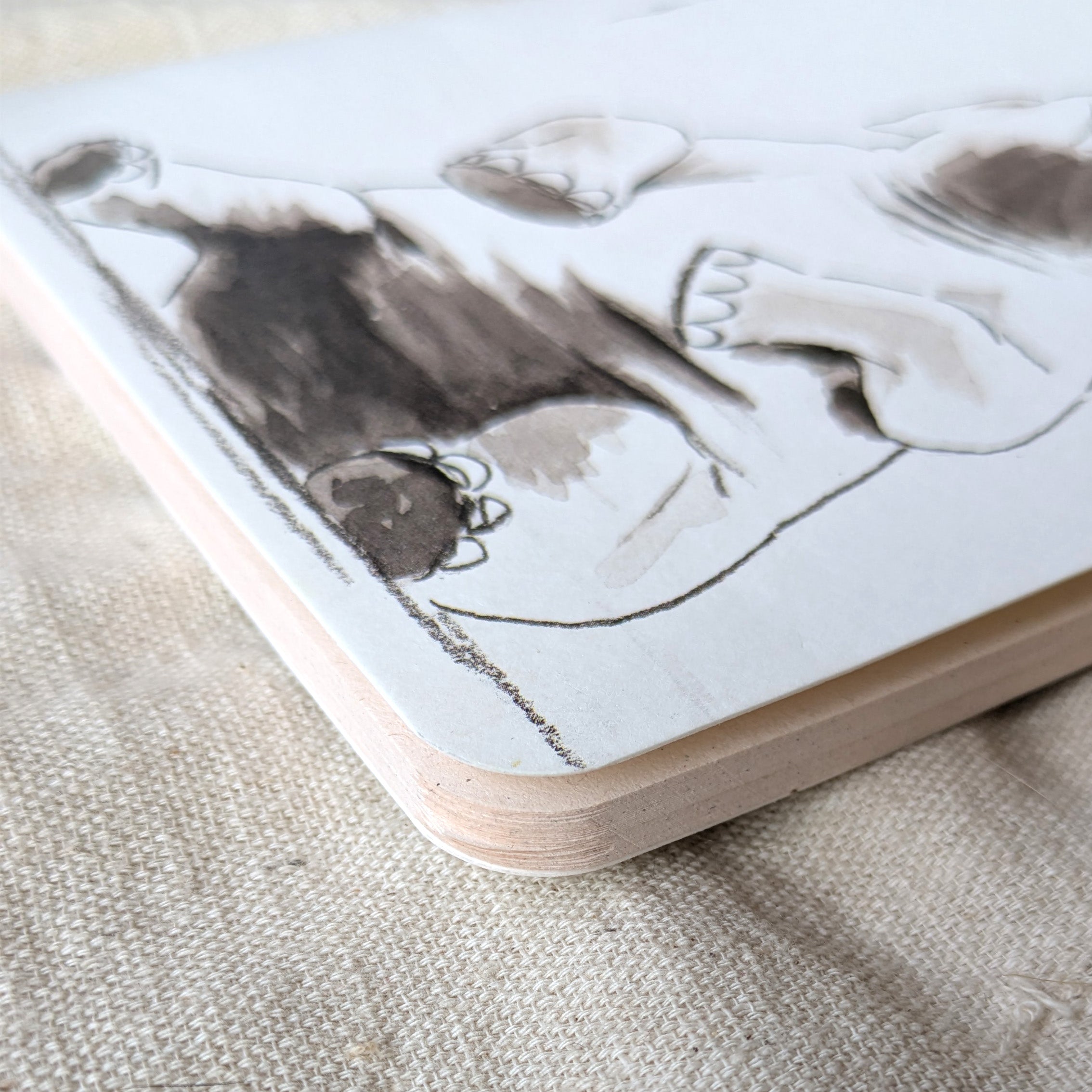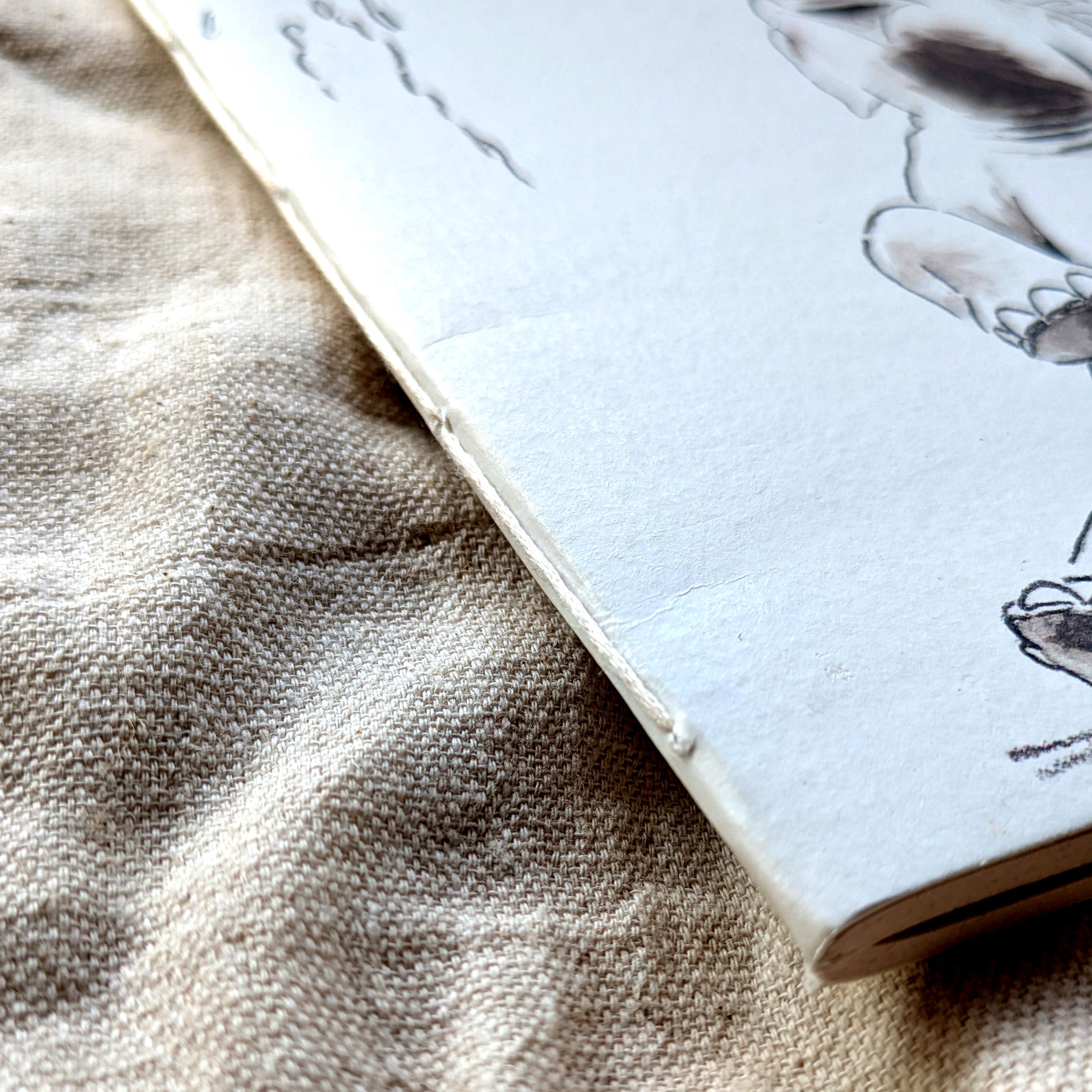 A5 hand-stitched notebook with an ink illustration printed on the cover.