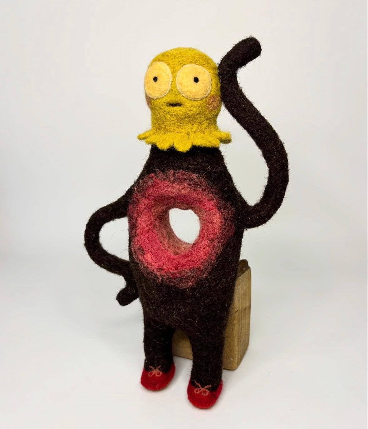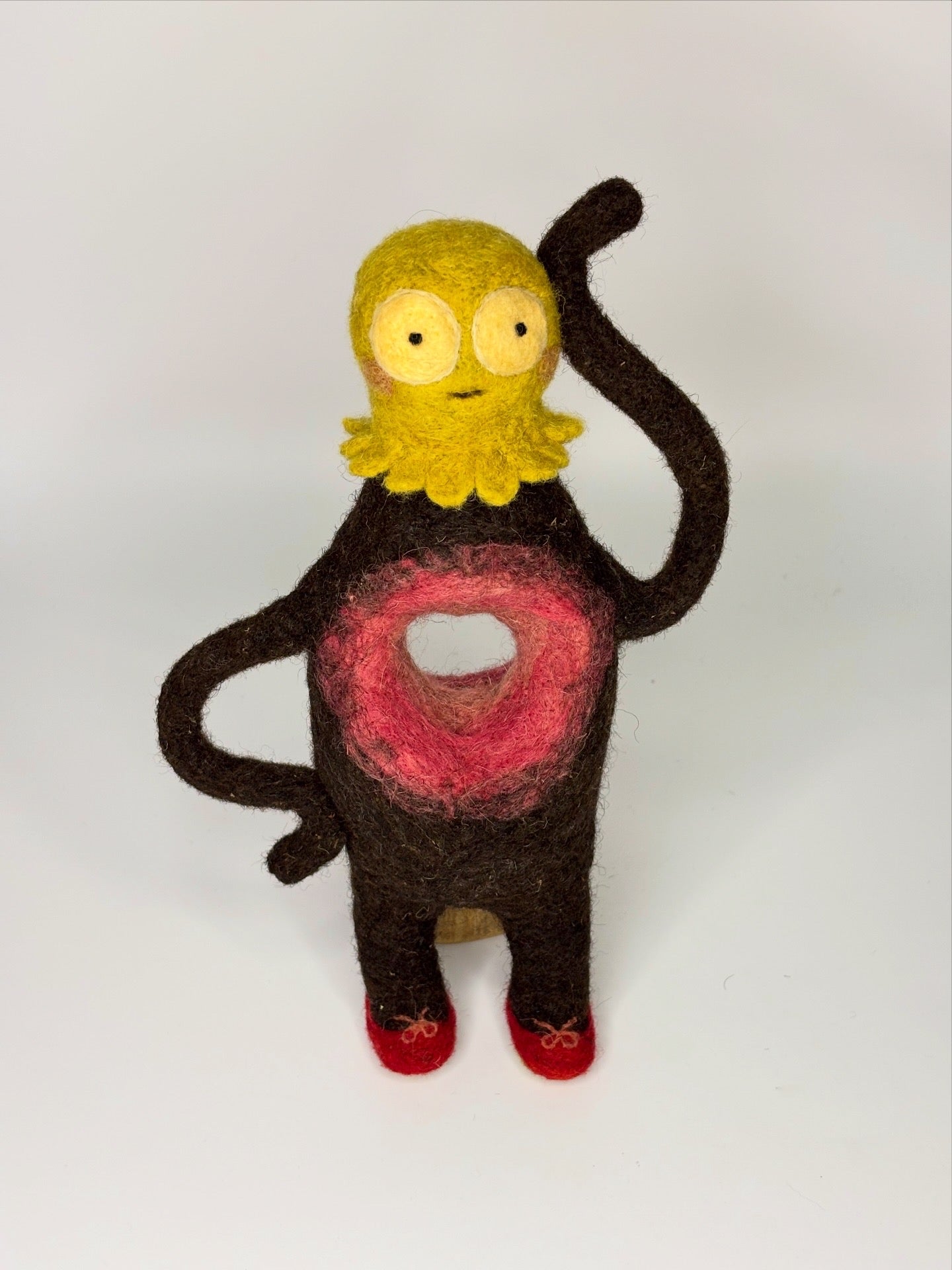 I’m Doing Great, Actually! is a needle felted wall sculpture made with natural brown and plant-dyed Himalayan wool, sourced from the Jad Bhotia Community of Dunda Village, Harsil Valley in Uttarakhand, India.