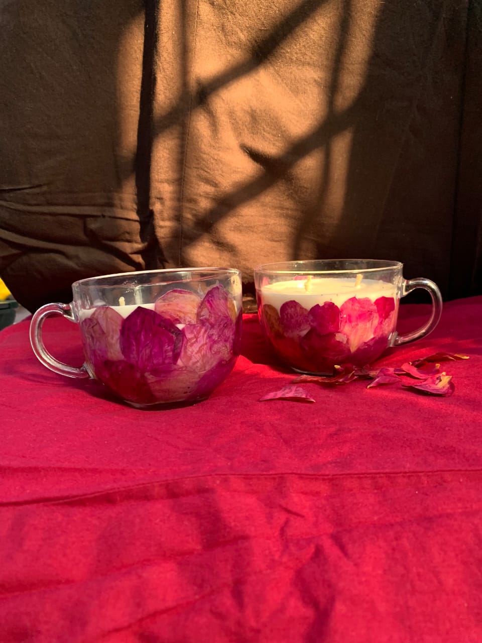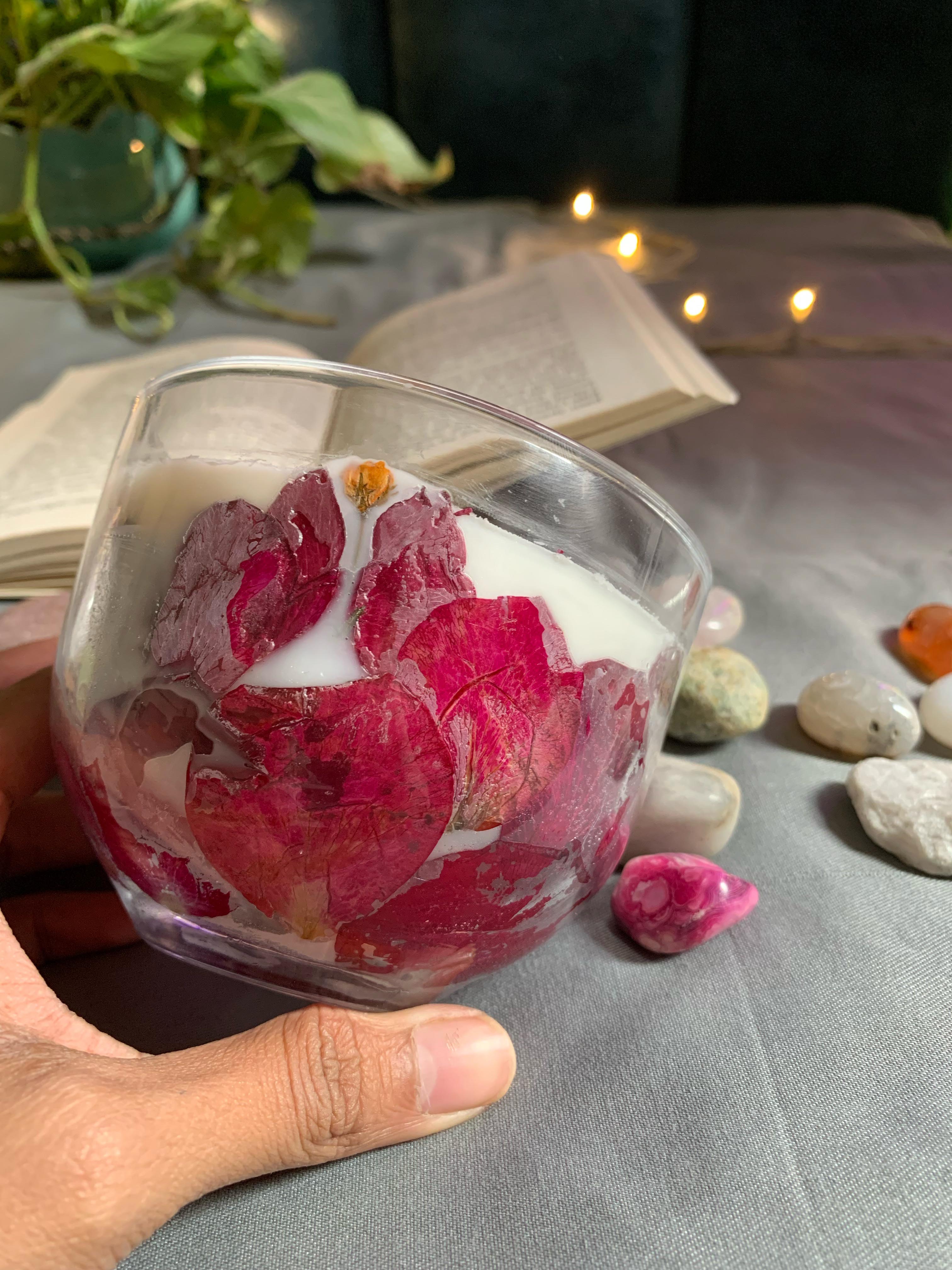 The Specs : Cup weight: 650 gms Wax qt: 420 ml Burn Time: 70-80 hours Ingredients: Soy wax, mica, essential oils, lead free wick, dried flowers Fragrance: oud+ roseAbout the Artist