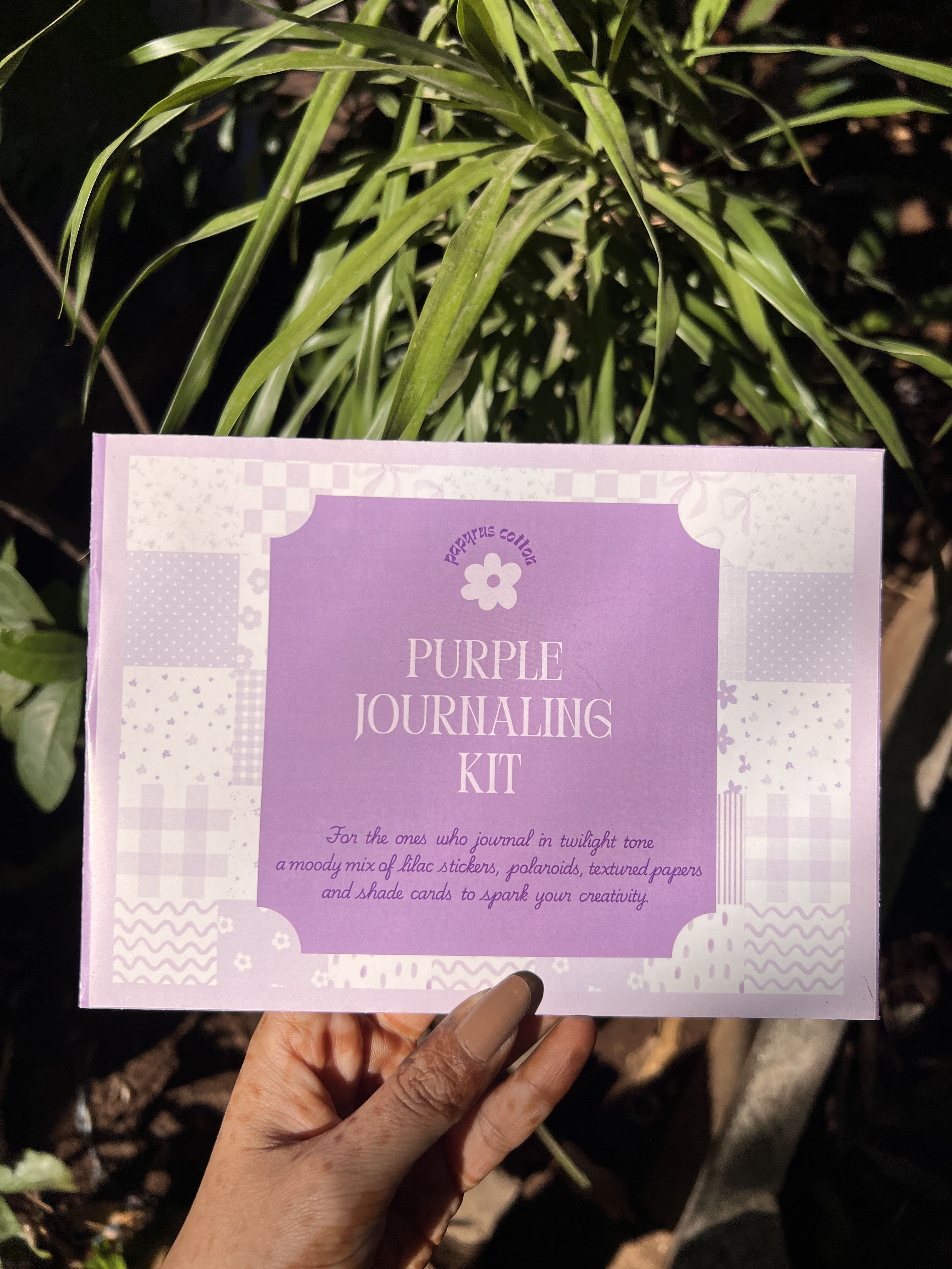 For the ones who journal in twilight tone a moody mix of lilac stickers, polaroids, textured papers and shade cards to spark your  creativity.