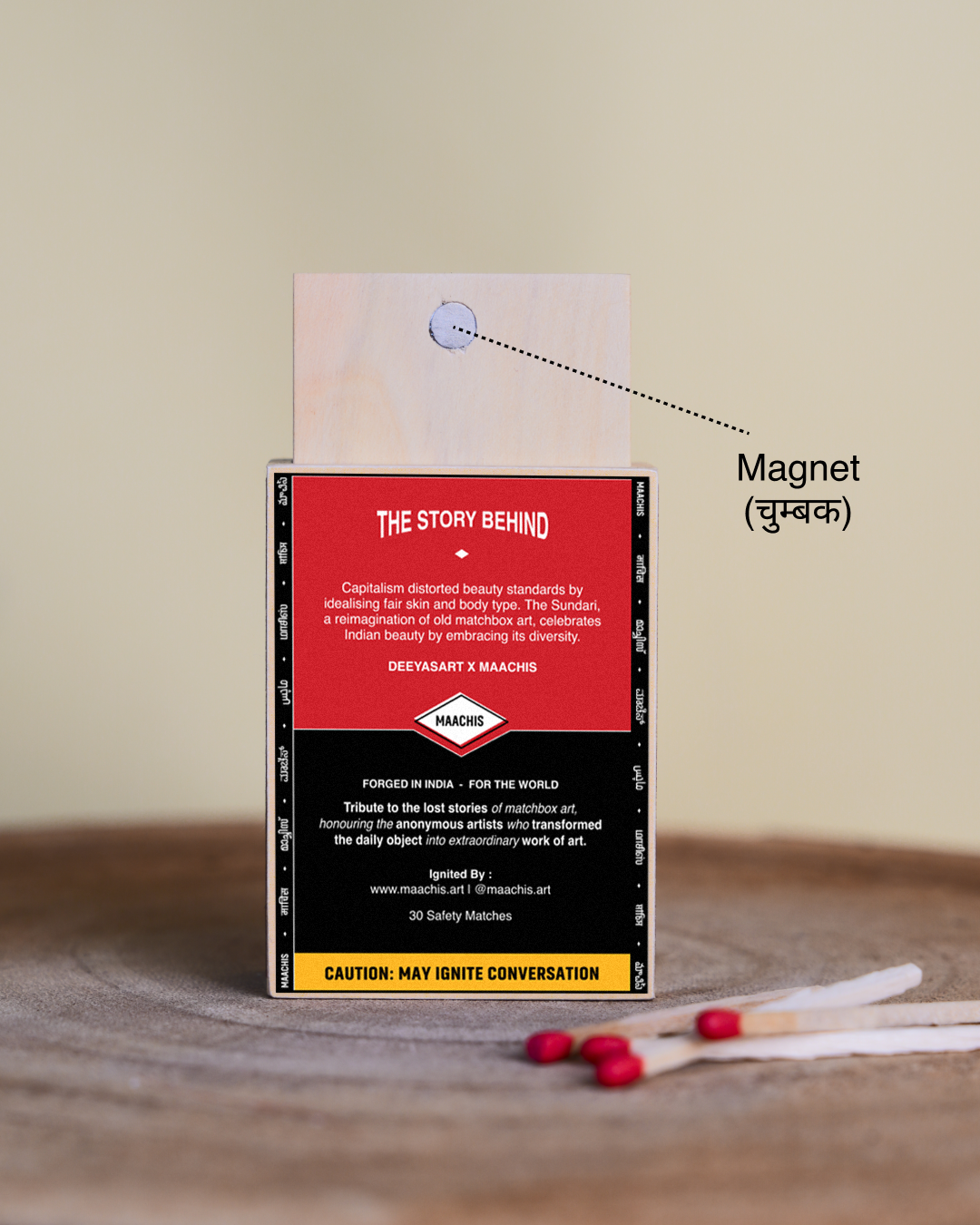 Capitalism distorted beauty standards by idealizing fair skin and specific body types.The Sundari, a reimagining of old matchbox art, celebrates Indian beauty by embracing its diversity.