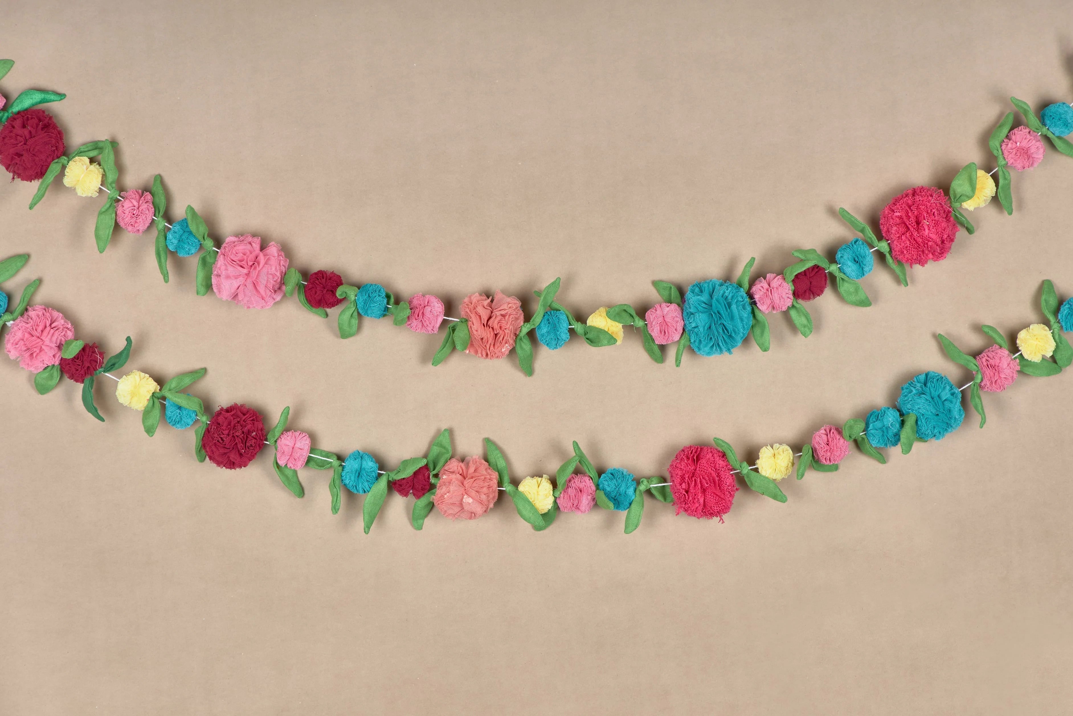 Upcycled Multicolor Flower Decorative Festive Garland String